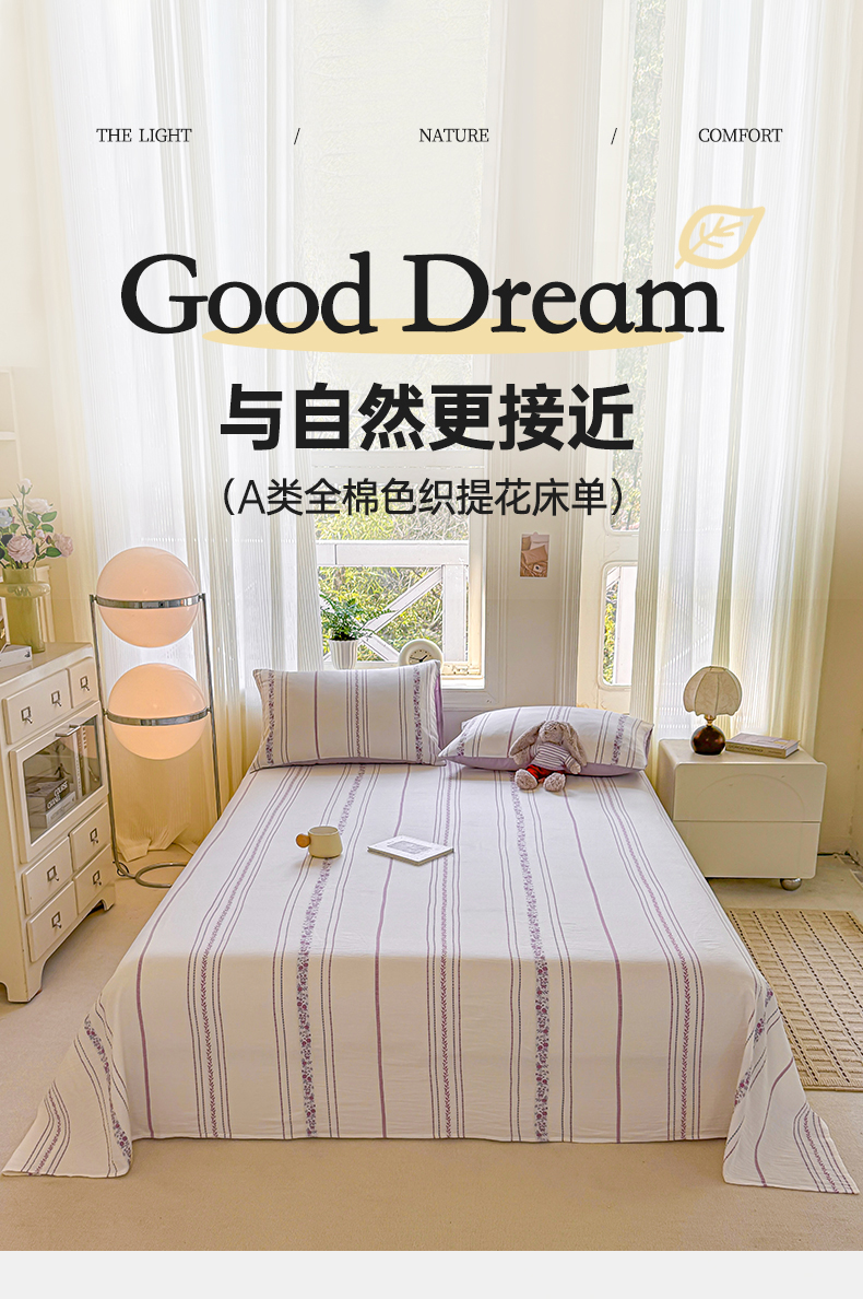 • 91家纺网 家纺一手货源 找家纺 灰鲸 2026新款全棉纯棉色织提花床单单床单床单单件 罗兰-紫