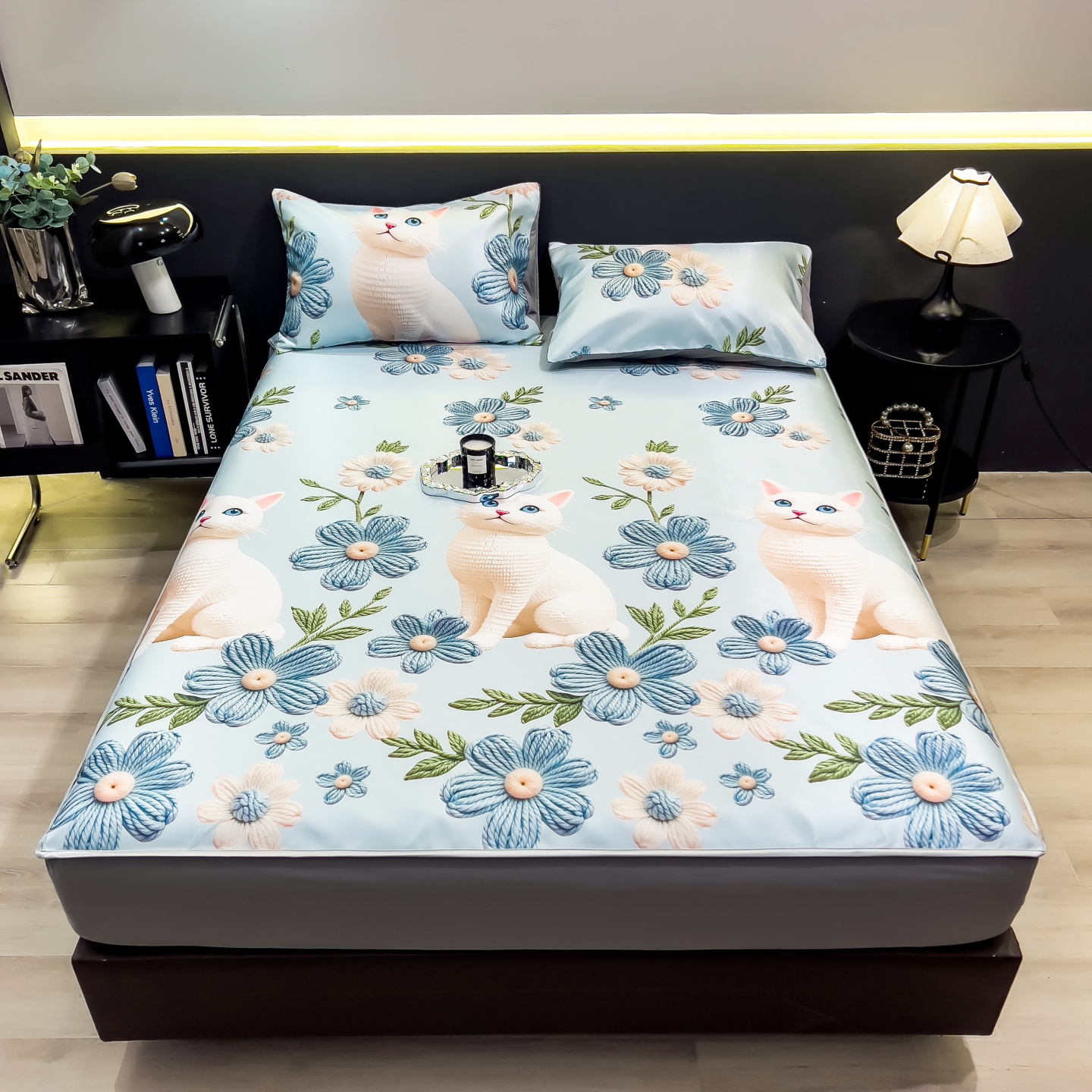 梵克保罗 2026春夏新款数码印花大版高克重冰丝凉席床笠款三件套 初墨