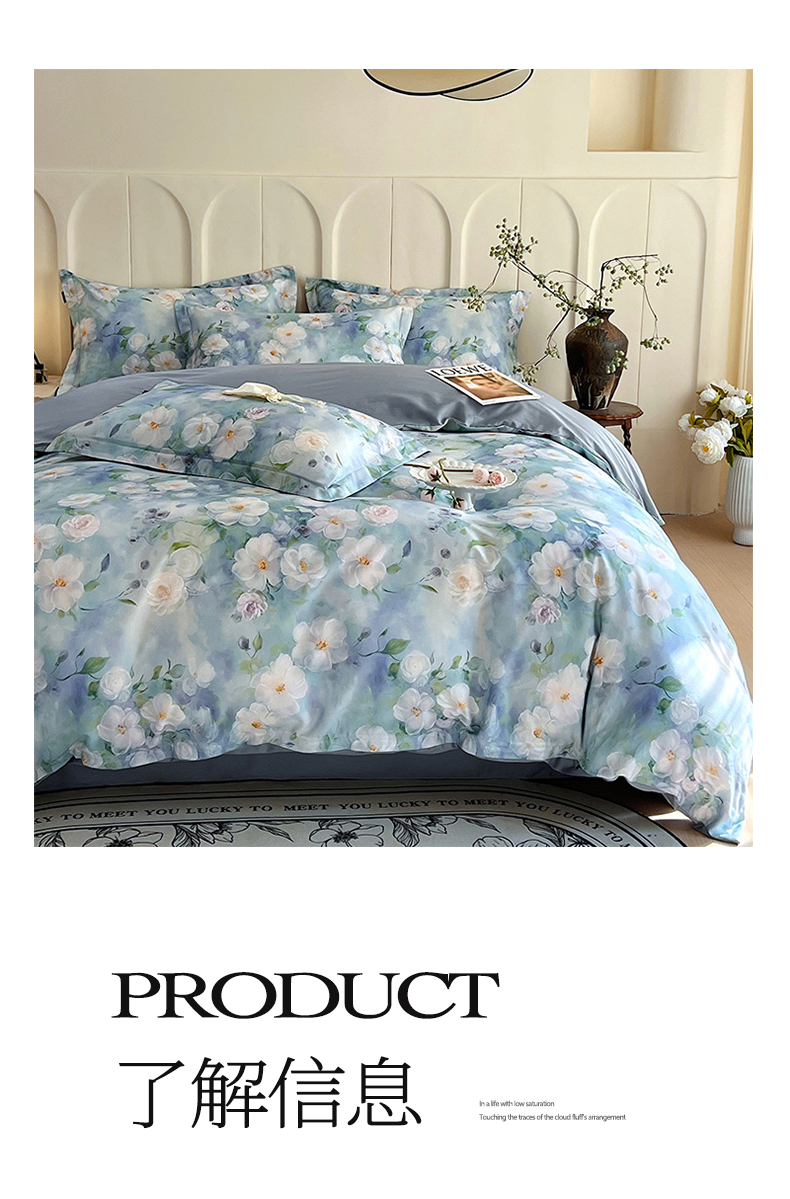 (总)帅露家纺 2025新款A类棉麻活性印染四件套系列,花间意境-红,花间意境-灰,花香满园-红,素锦-咖,香叶时代,映霜-灰,映霜-绿