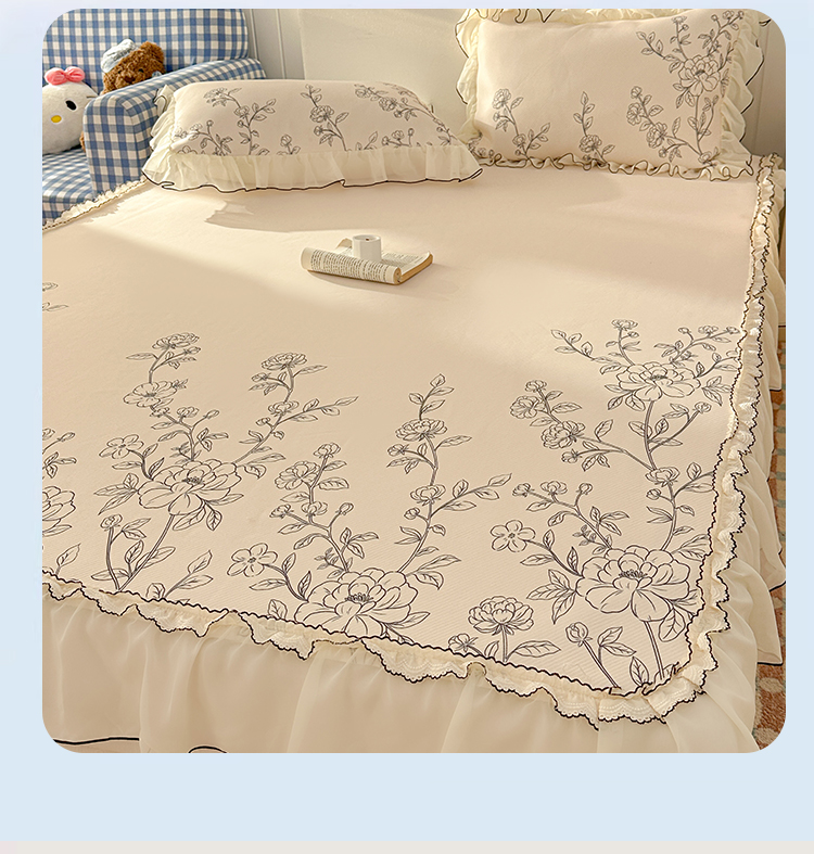 川悦生活 2026新款凉豆豆凉感冰丝床裙三件套 墨枝春叙