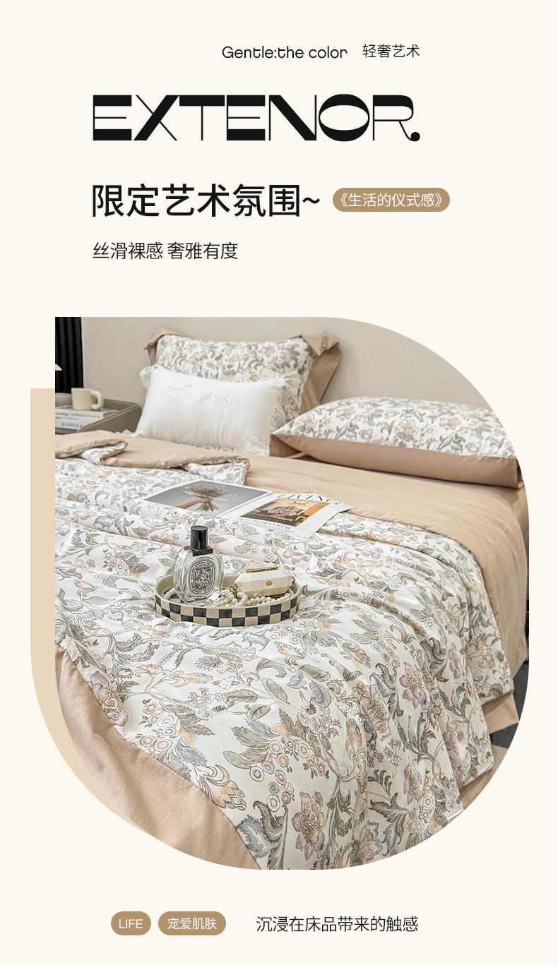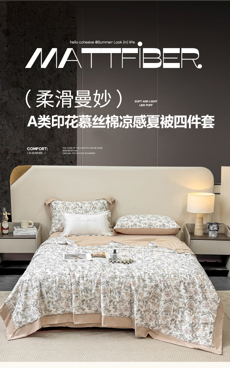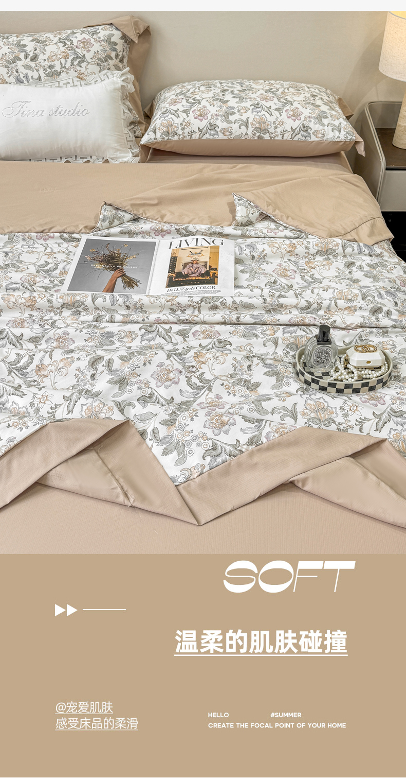 当前位置: 91家纺网 > 商品网购 > 床品套件 > 四件套 > 其它四件套 > 慕木家纺 2026新款A类印花慕丝棉凉感夏被夏凉被空调被四件套 锦芙+驼