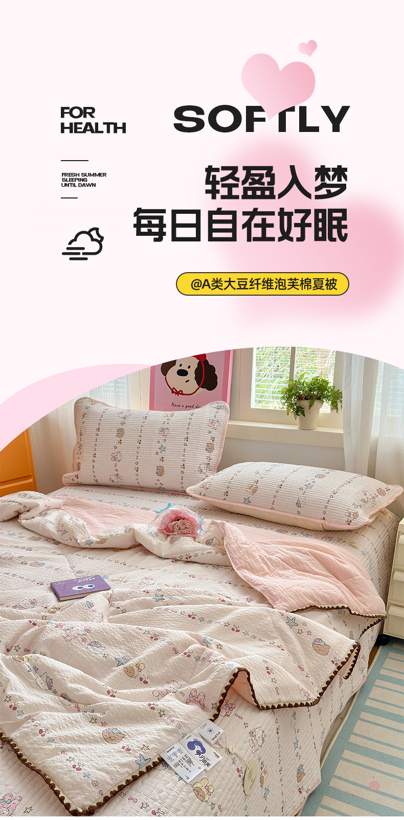 • 91家纺网 家纺一手货源 找家纺 (总)云玲时尚 2026新款A类云感双层纱7A抗菌夏被四件套系列,出逃星星人,绘本小熊,蘑菇屋,绒绒熊,甜兔日记,小狗滑板日,小熊彩虹派对,小熊酱,小熊牛仔包,元气苹果熊