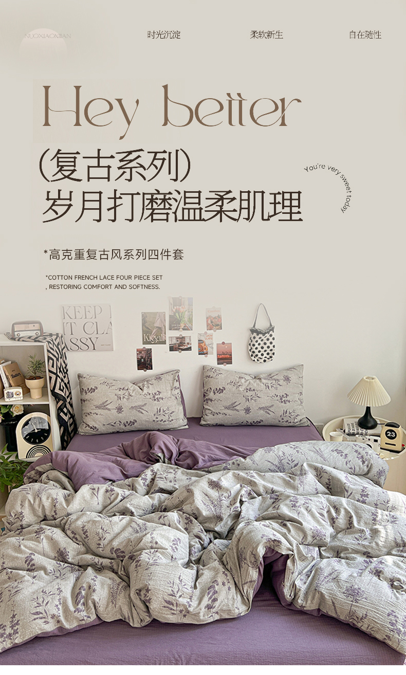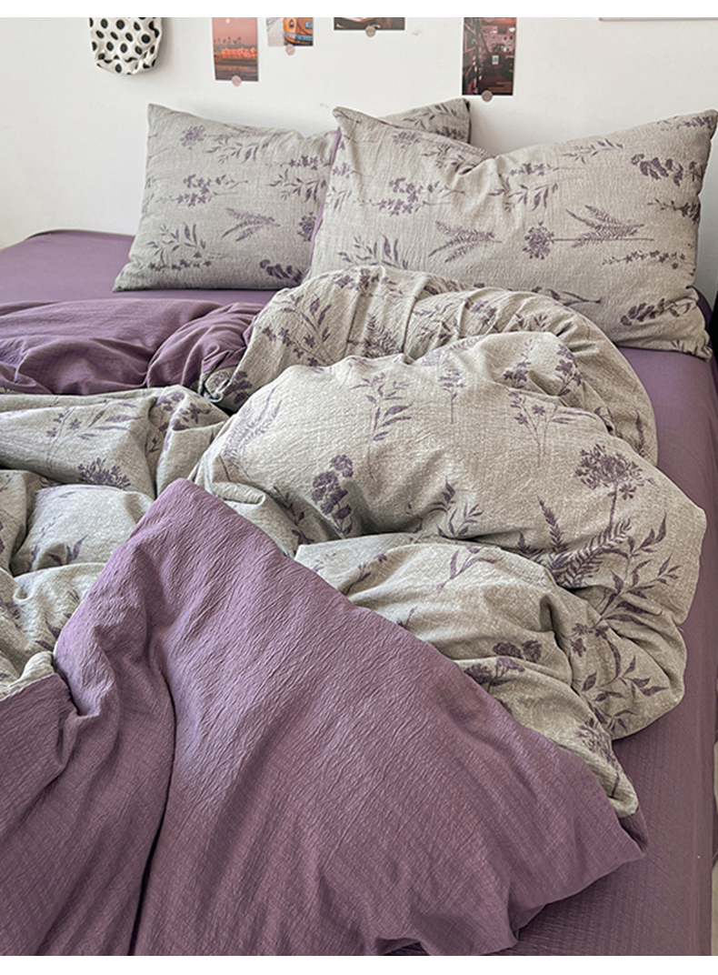 当前位置: 91家纺网 > 商品网购 > 床品套件 > 四件套 > 其它四件套 > 朵朵家纺 2026新款高级感轻奢复古美拉德色系双层纱泡芙棉床品四件套加厚水洗双层纱软 紫苏