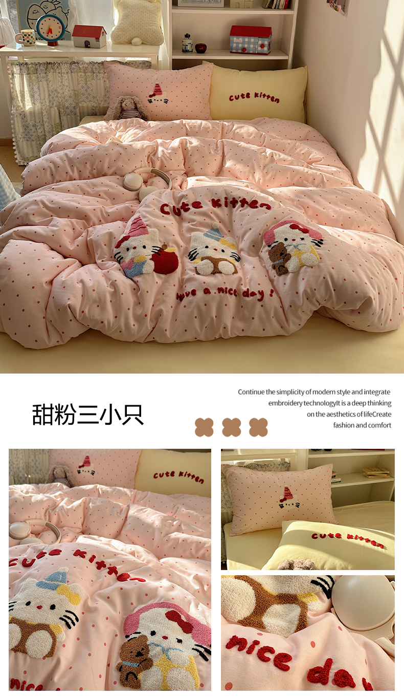 当前位置: 91家纺网 > 商品网购 > 床品套件 > 四件套 > 毛巾绣四件套 > 玉海棠家纺 2026新款高克重超软糯可爱系毛巾绣四件套 小猫抢苹果