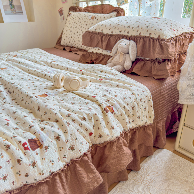梵希雅 2026新款泡芙纱床盖夏被四件套 田园兔