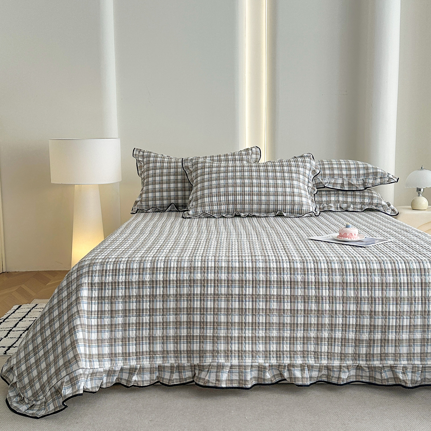(总)幸嘉轩 2026新款双层纱花边床盖单件加厚夹棉云感皱皱纱花边款床单三件套,蓝布布,春华浓,花姿-豆沙,莫奈-紫,萌友聚会,快乐小象,醉玲珑,半岛花园,紫苏,蓝色泡芙狗,风的印记,北野,一颗樱桃,豆蔻年华-紫,兔野仙踪,吉祥小马,花香容
