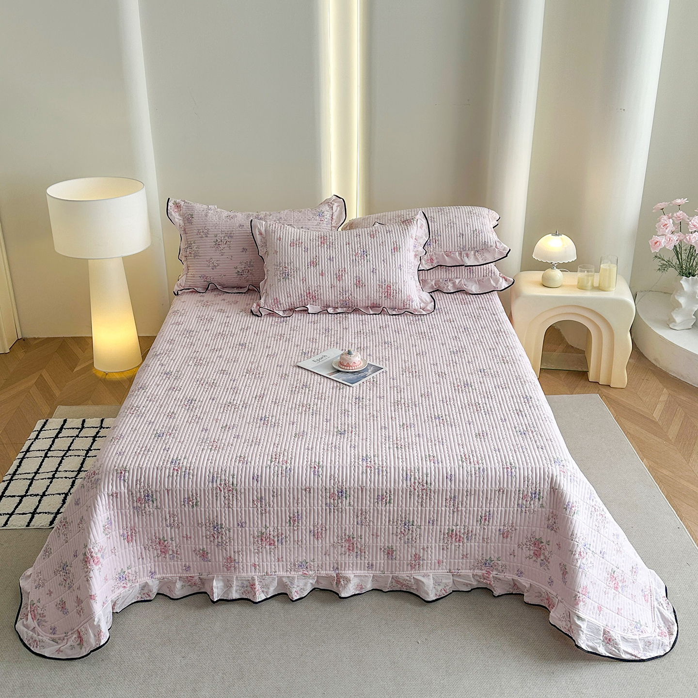 幸嘉轩 2026新款双层纱花边床盖单件加厚夹棉云感皱皱纱花边款床单三件套 花香容