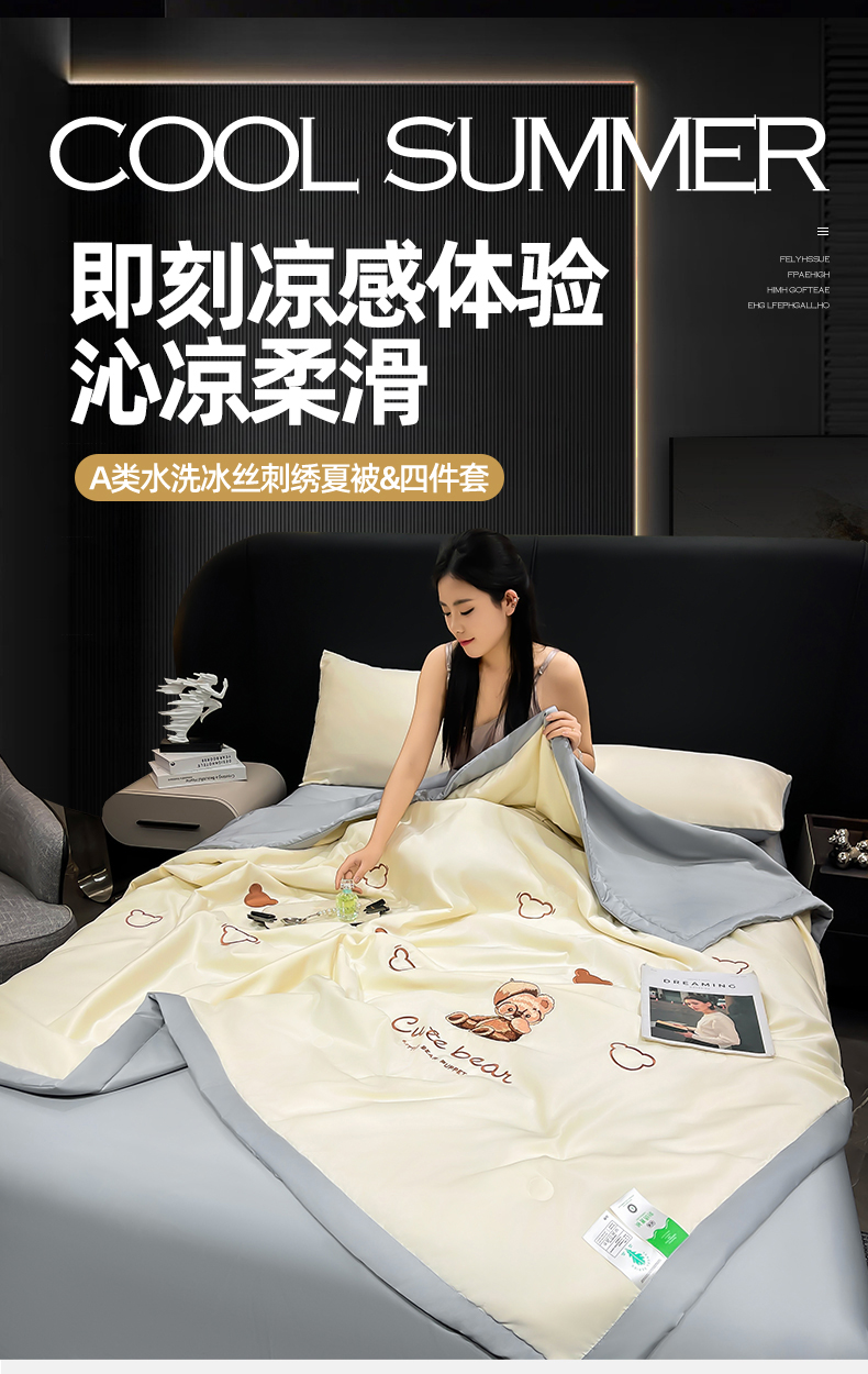 • 91家纺网 家纺一手货源 找家纺 梵蒂莎 2026新款满绣系列-水洗真丝空调被水洗冰丝夏被四件套夏凉被(需要买家秀,加微信) 可爱熊-白灰