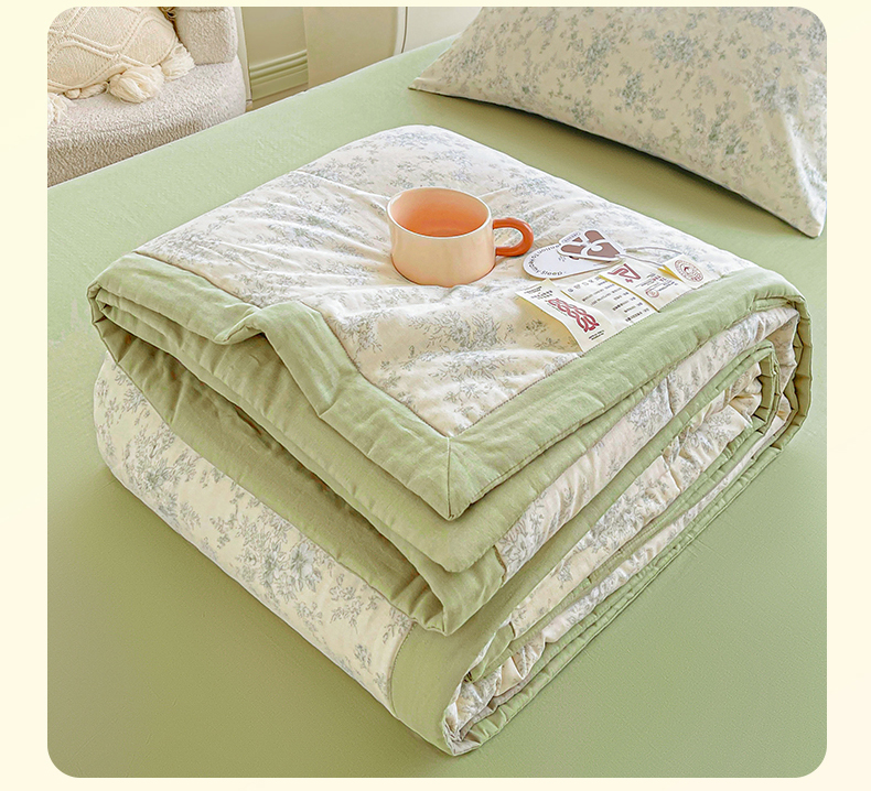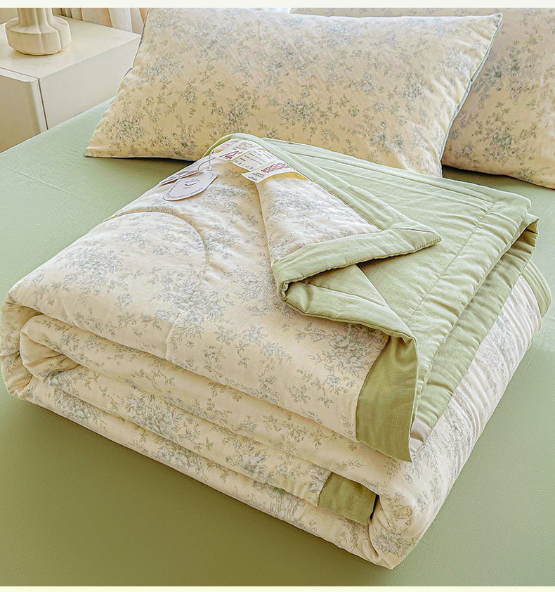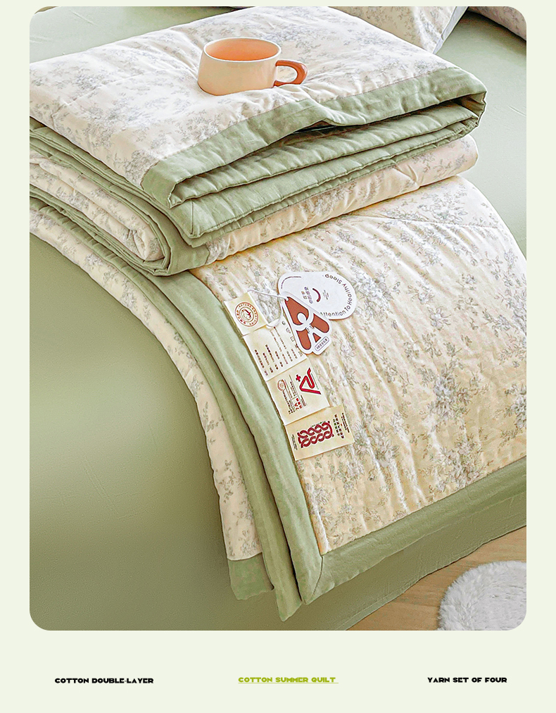 • 91家纺网 家纺一手货源 找家纺 梵蒂莎 2026新款全棉双层纱夏被四件套100%棉花夏凉被里外纯棉被子被芯(需要买家秀,加微信) 烟霞漫舞-绿