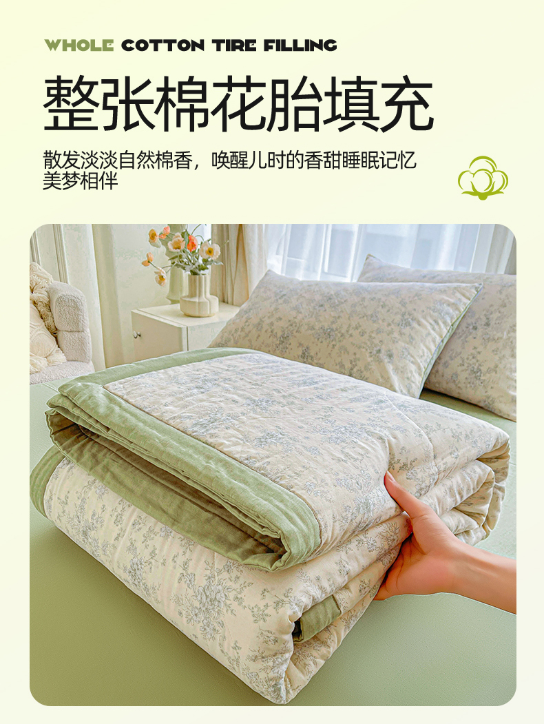 梵蒂莎 2026新款全棉双层纱夏被四件套100%棉花夏凉被里外纯棉被子被芯(需要买家秀,加微信) 烟霞漫舞-绿
