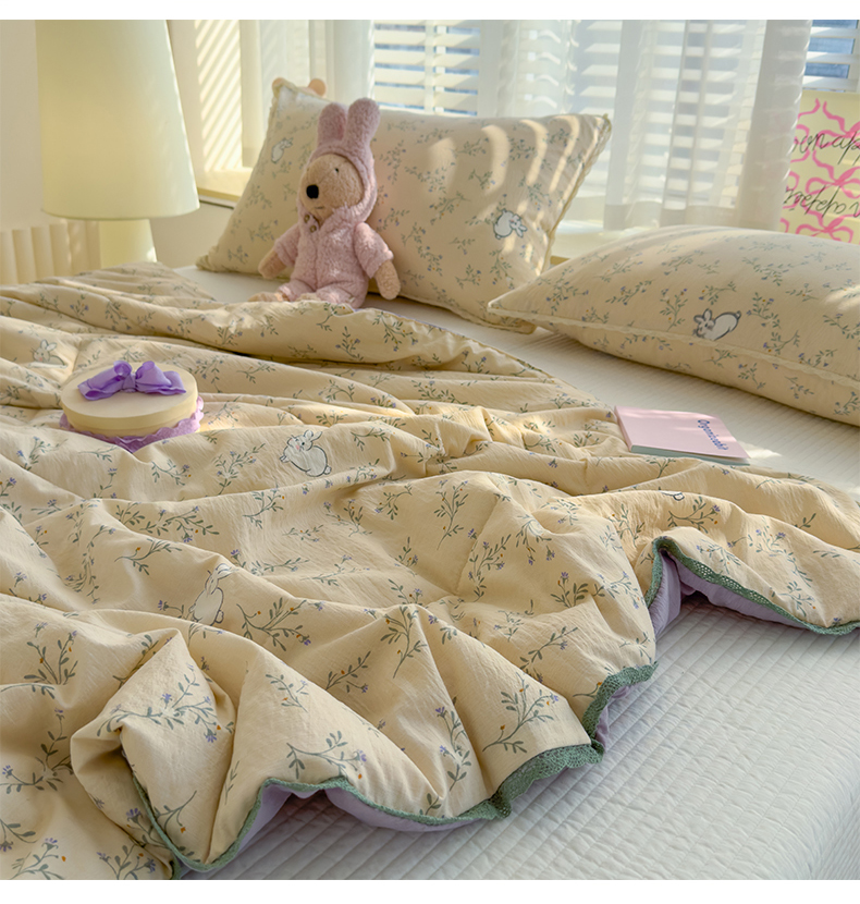 商品名称:几禾 2026新款云感双层纱抗菌花边夏被-晴风系列 晴风-留白日记