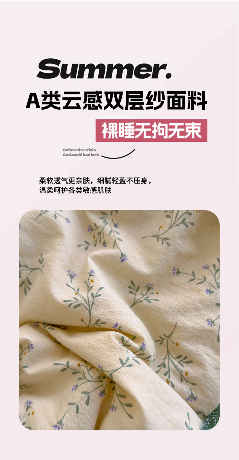 几禾 2026新款云感双层纱抗菌花边夏被-晴风系列 晴风-留白日记