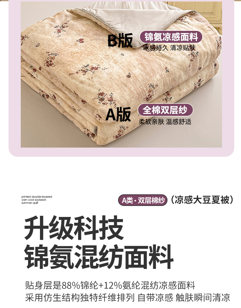 (总)小禹仔家纺 2026新款氨纶凉感印花夏被,夏瑶绿,半山花,风荷举,花陌语,曼莎,木绵芙,沐野,晴川,樱絮,櫻绯雨,薄荷绿,冰感粉,冰感粉拼薄荷绿,藏青拼天空蓝,米色,天空蓝,天空蓝拼米色,烟云灰,烟云灰拼浅灰,优雅紫