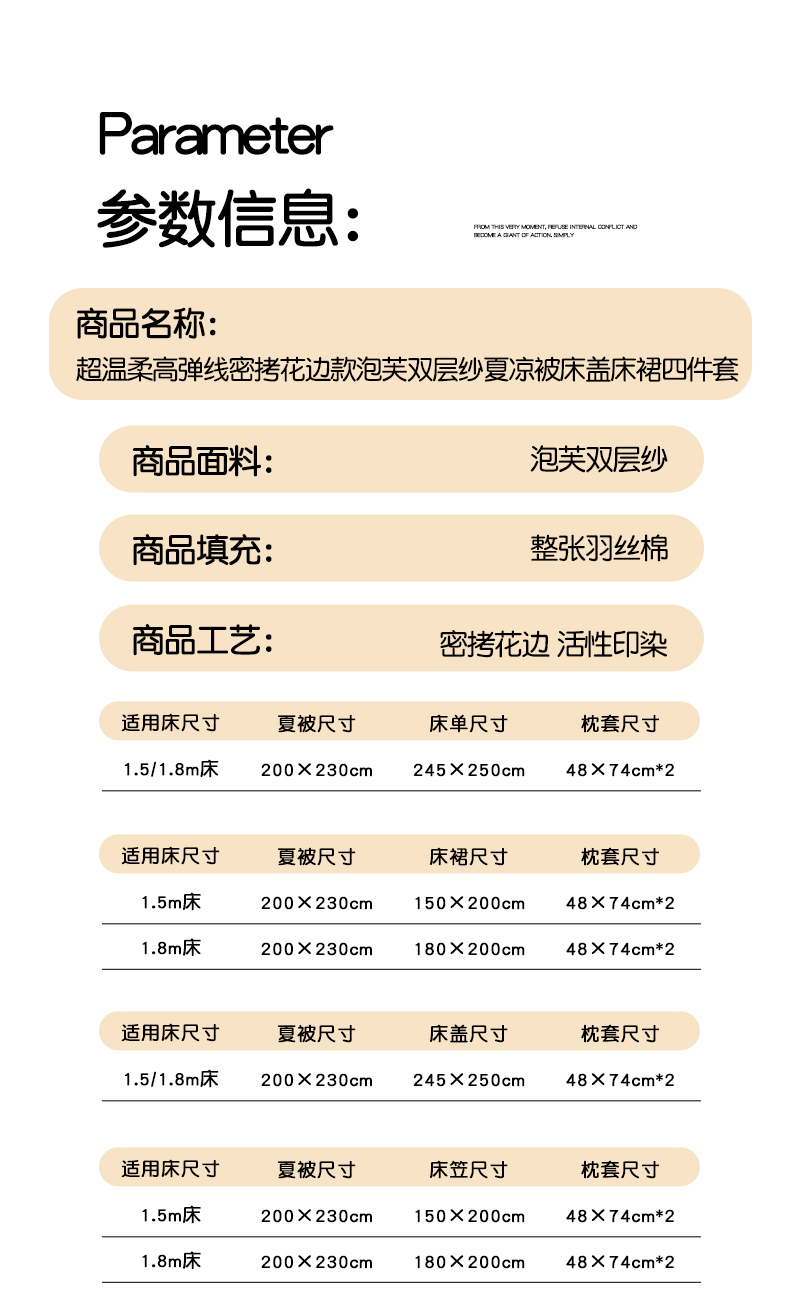 【1.5床】200x230cm单夏被+150x200cm床裙+枕套一对 | ¥85.00 |