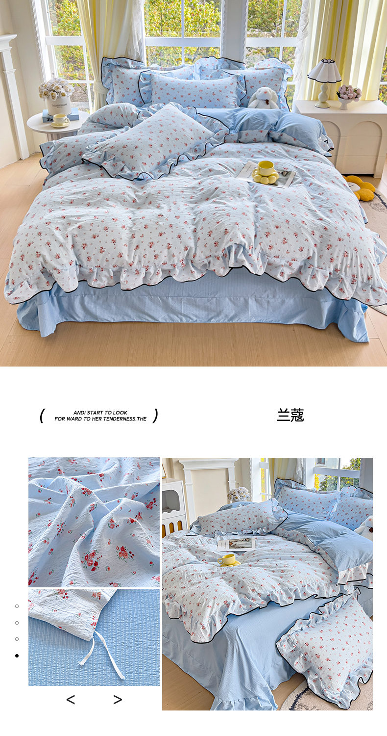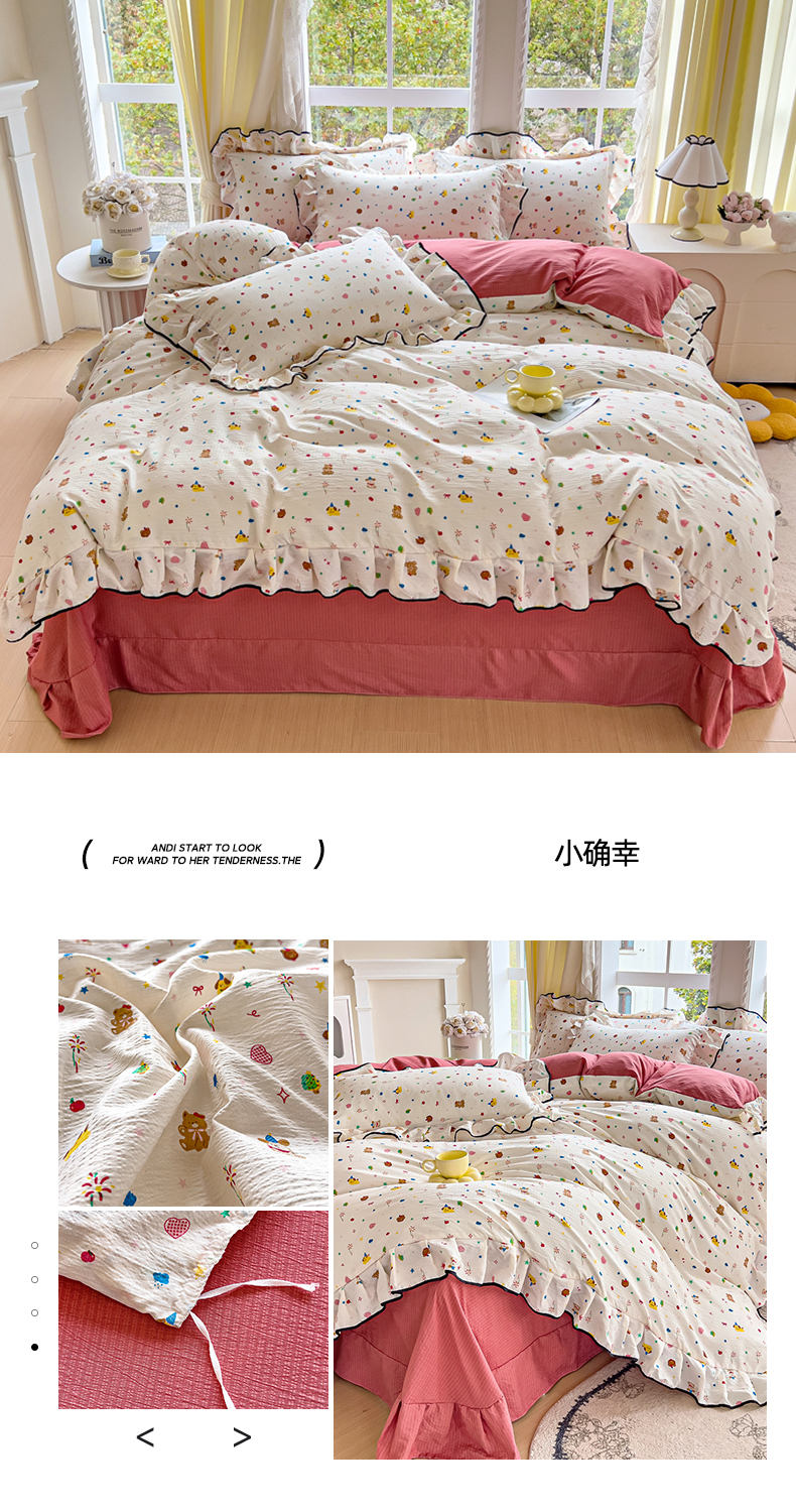 当前位置: 91家纺网 > 商品网购 > 床品套件 > 四件套 > 其它四件套 > 找底底家纺 2026新款A类泡泡棉双层纱四件套花边夏被四件套 雾兰格兔