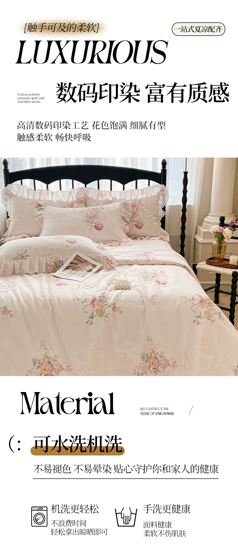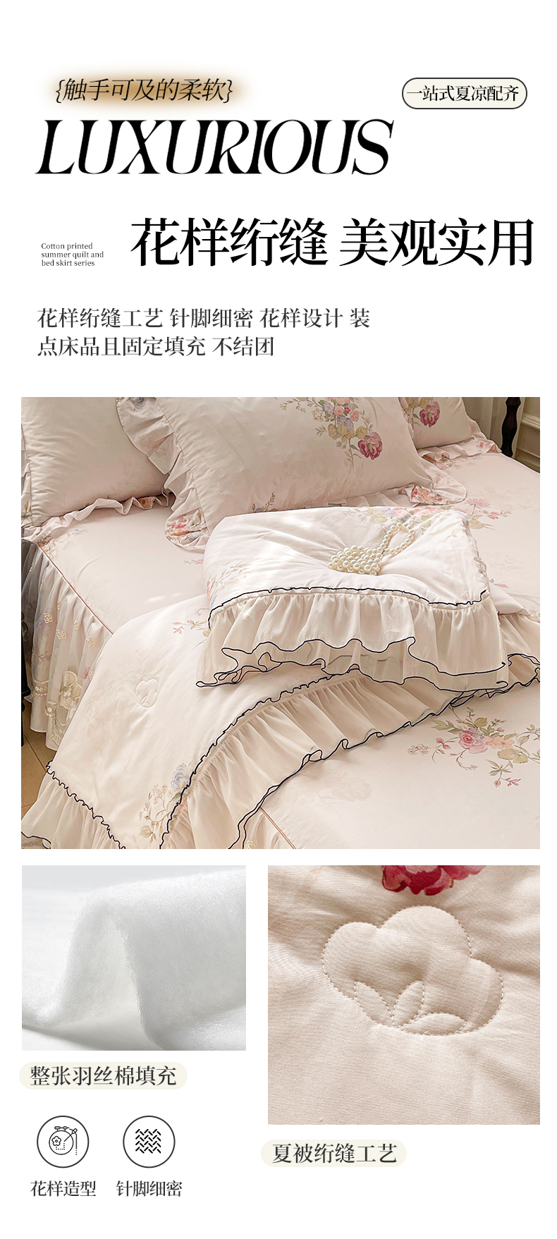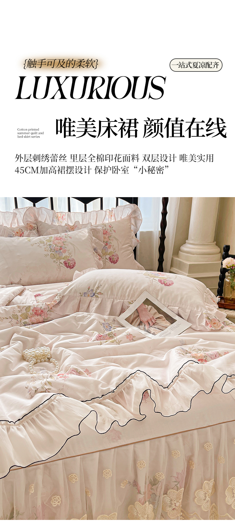 (总)宜凡家纺 2025新款全棉数码印花床裙三件套系列一,静若幽兰,浮云织梦,梦幻花园,陌上花开