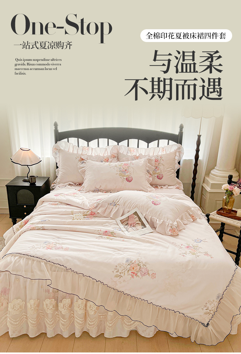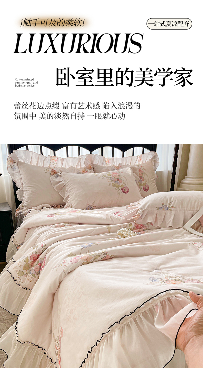 宜凡家纺 2026新款全棉数码印花夏被床裙四件套②号系列 澜晚