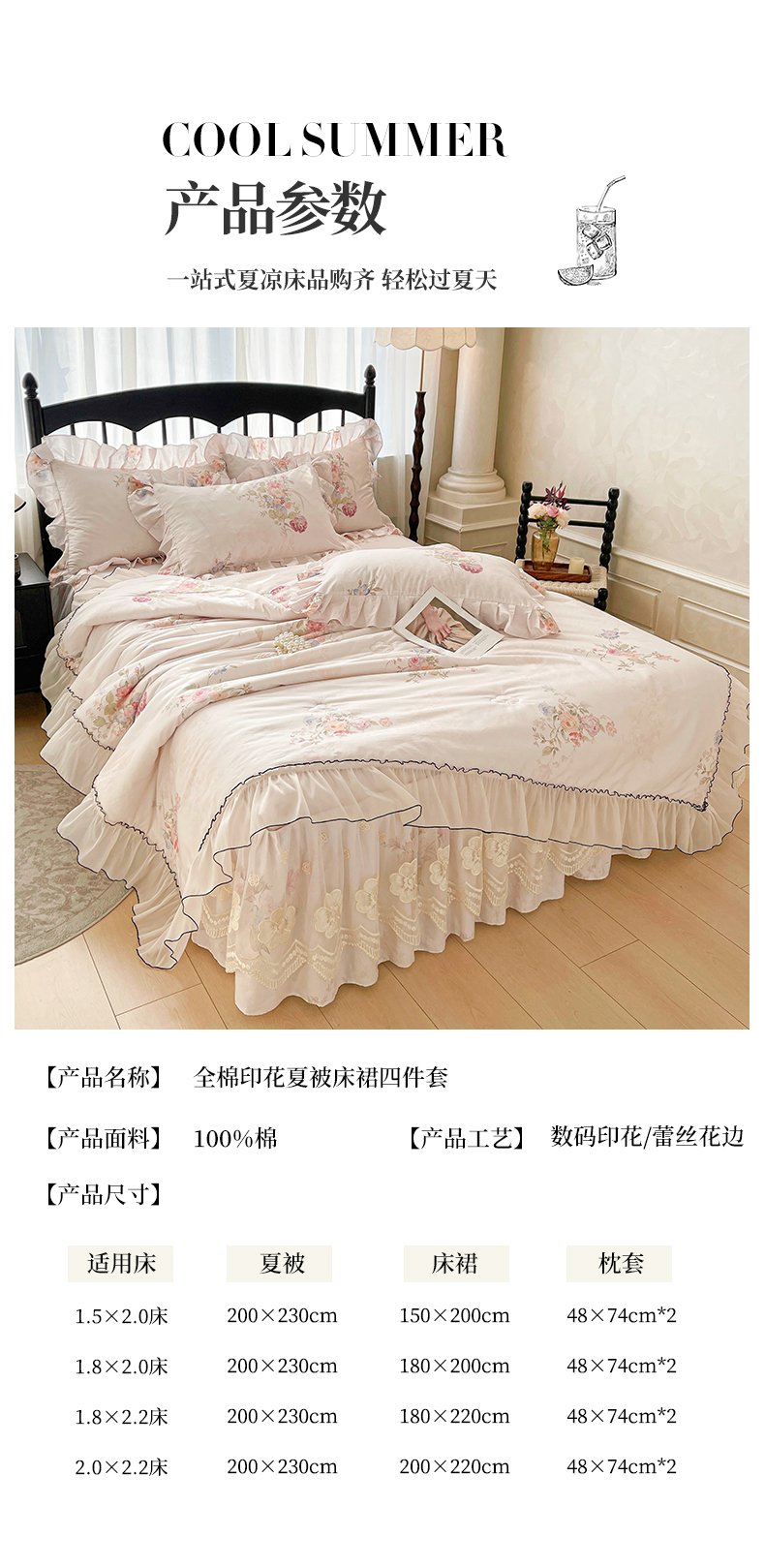 1.5*2.0床裙2.0*2.3夏被款四件套