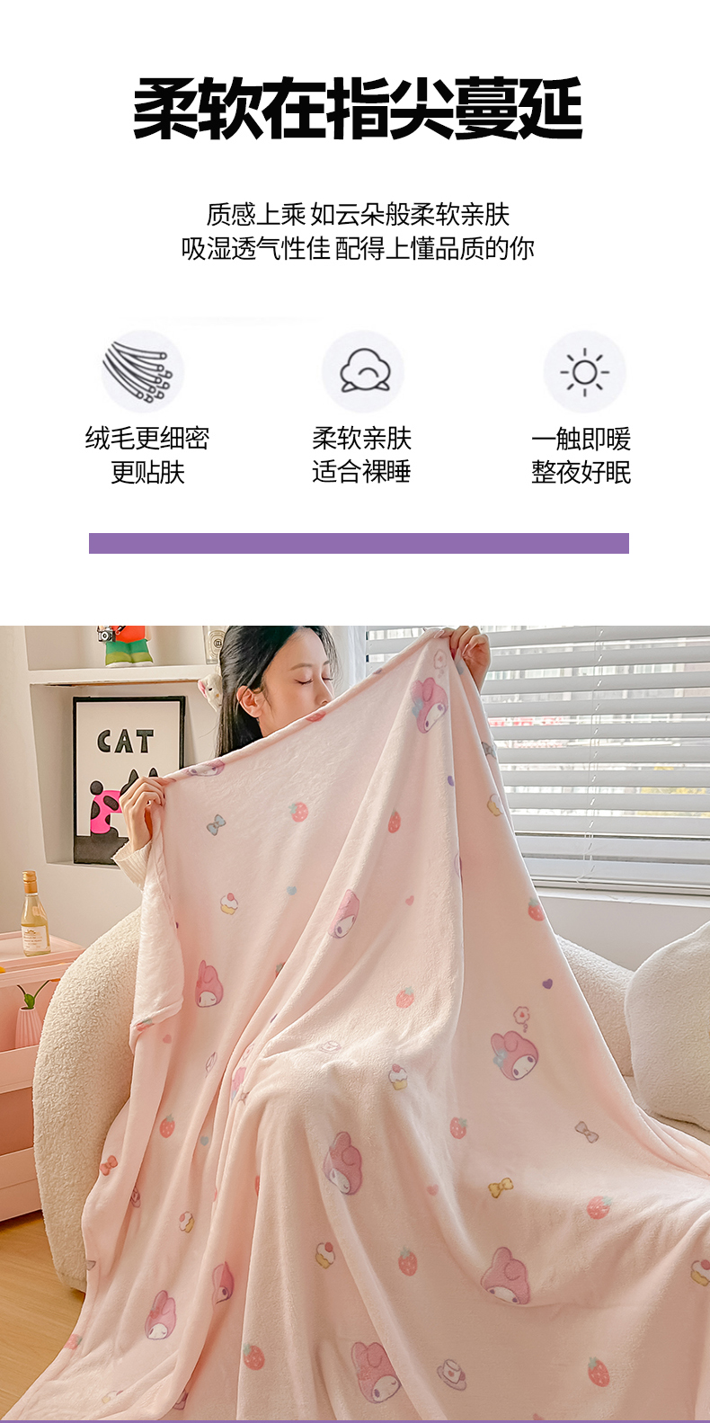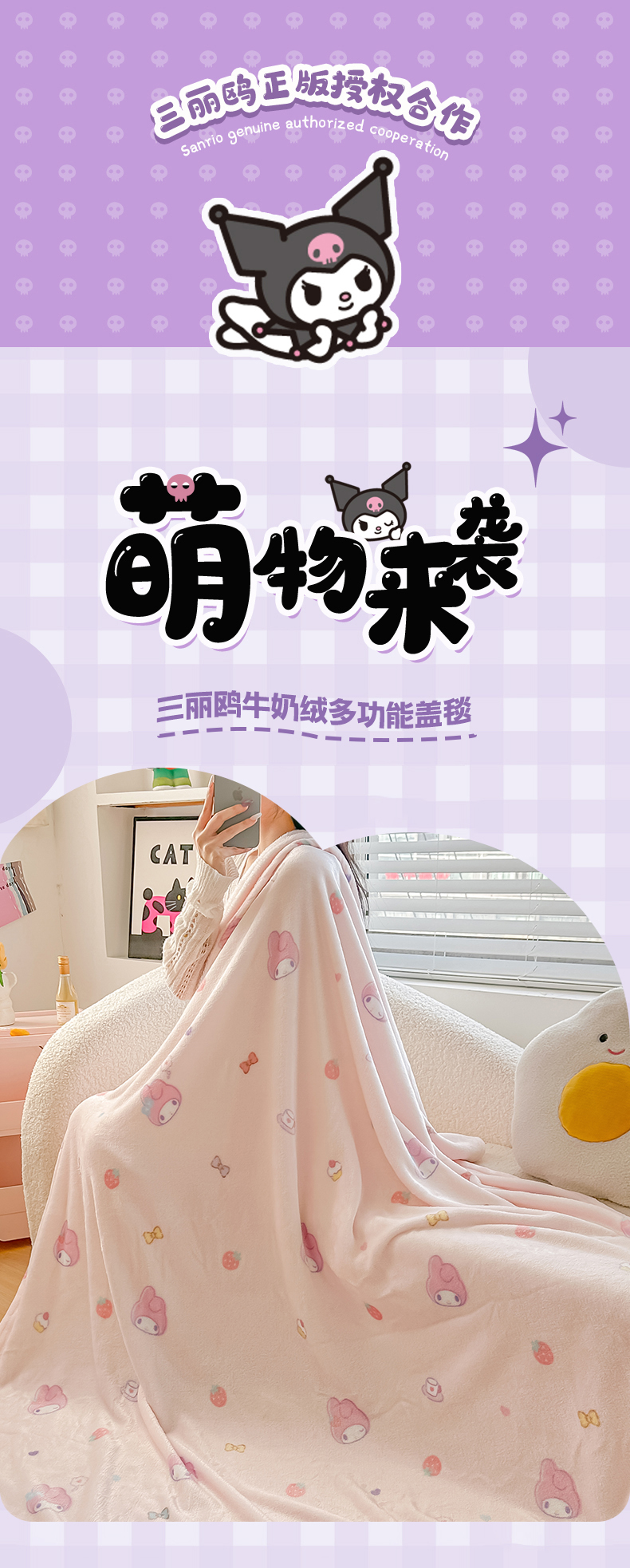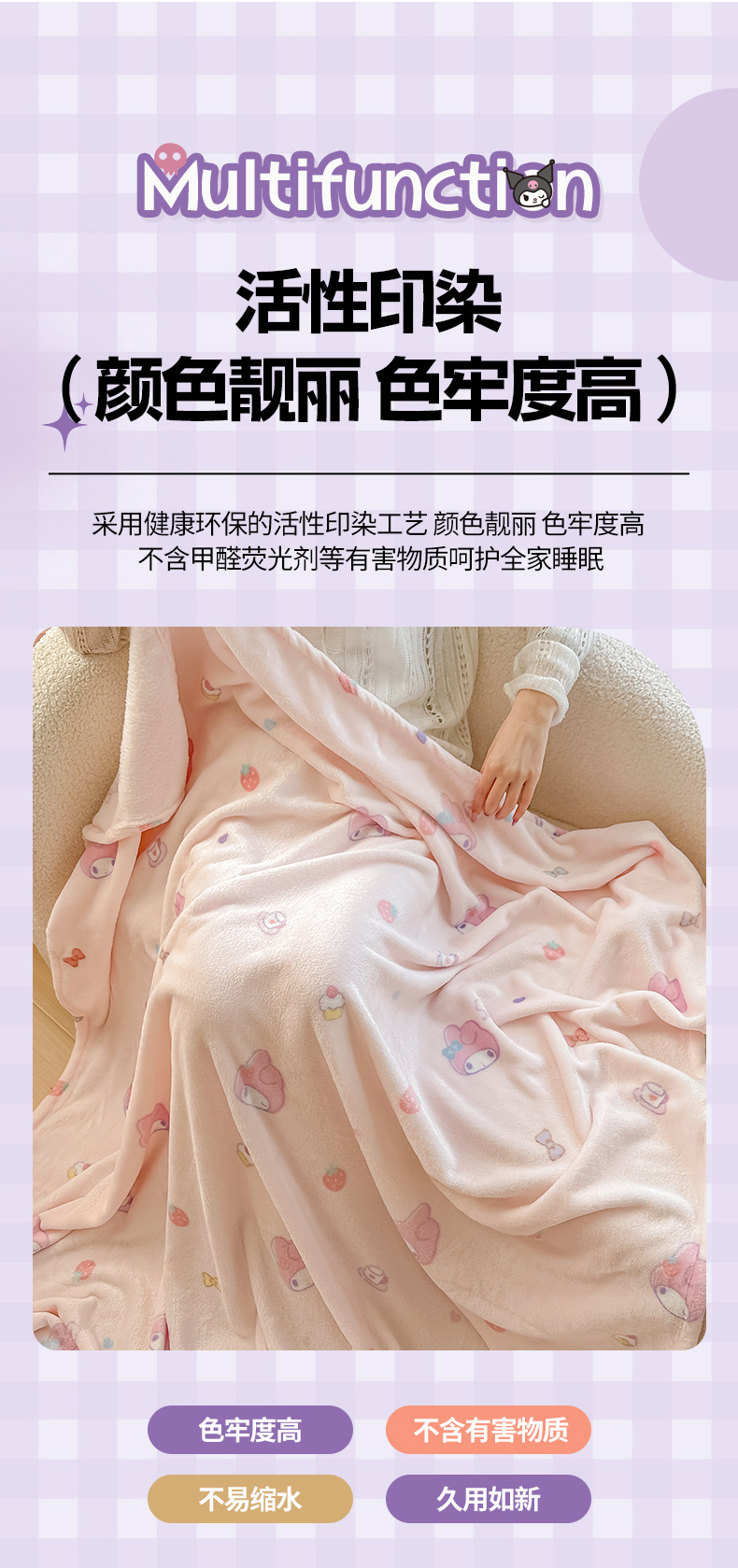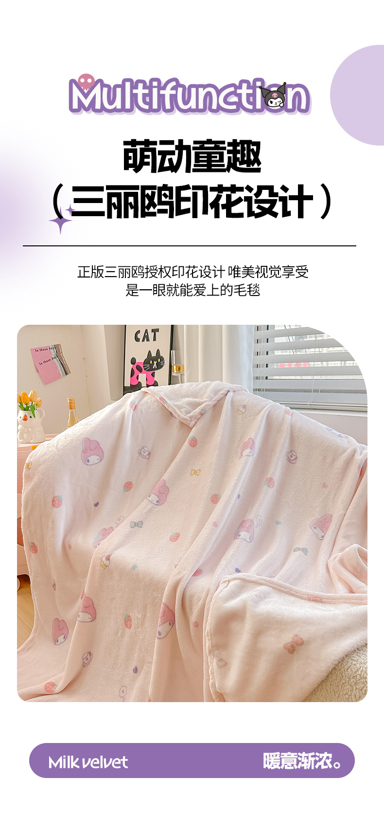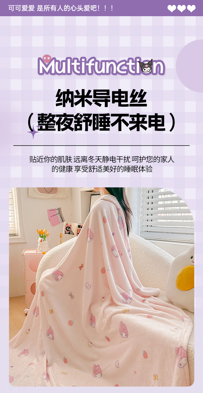 商品名称:博雅 2026新款三丽鸥小版牛奶绒盖毯午睡毯 小版-下午茶美乐蒂