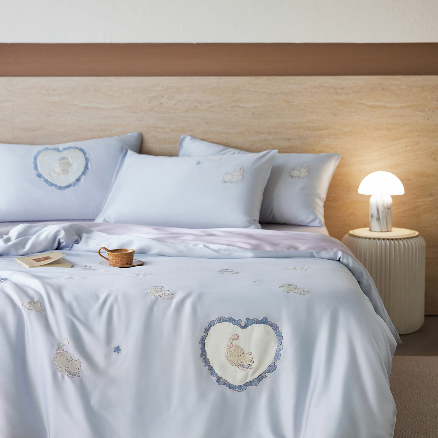 当前位置: 91家纺网 > 商品网购 > 床品套件 > 四件套 > 其它四件套 > 风向标家纺 2026新款兰精天丝绣花四件套-萌宠系列 清蓝奶芙