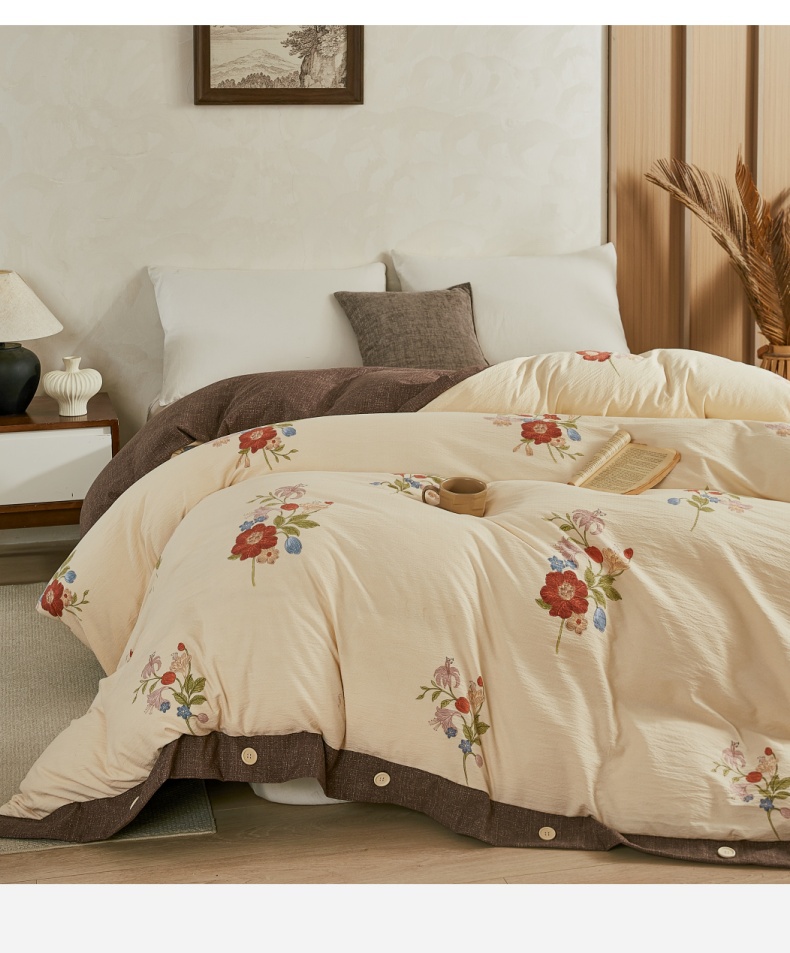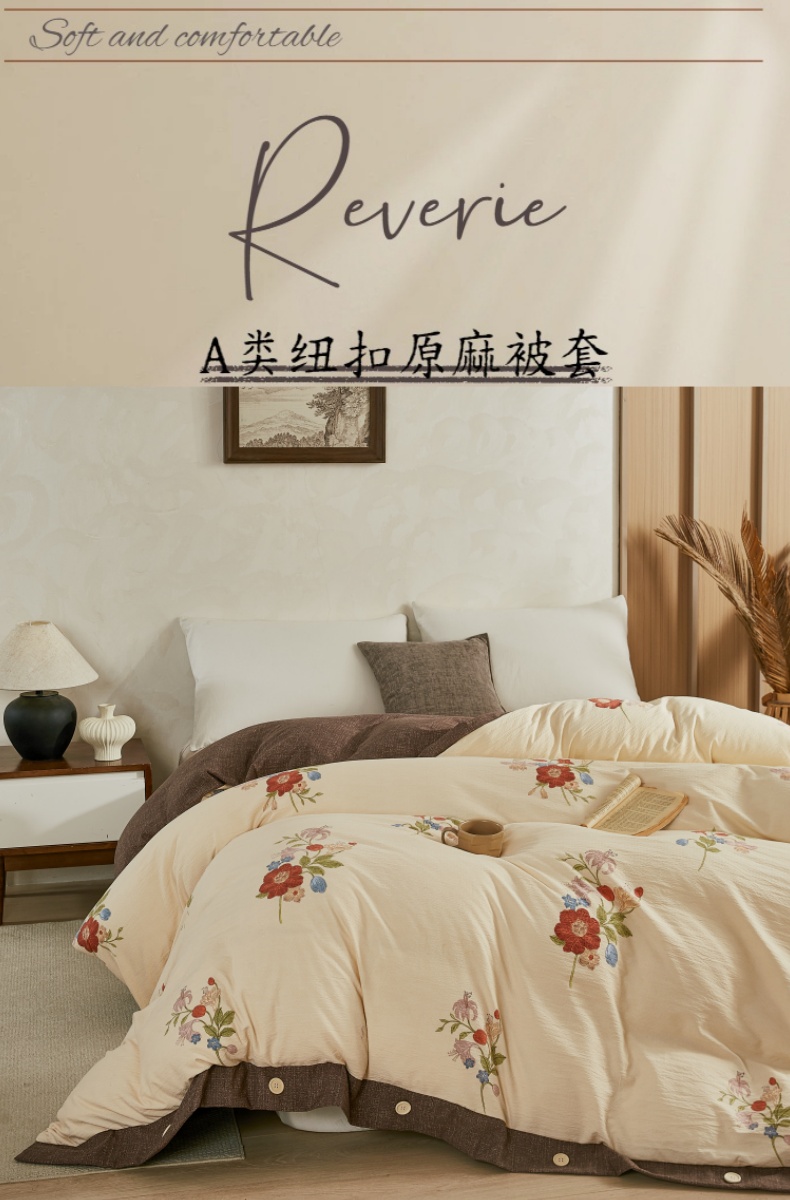 商品名称:梦舒羽 2026新款A类原麻纽扣加厚被套床单宿舍双人床仿亚麻被子 锦花