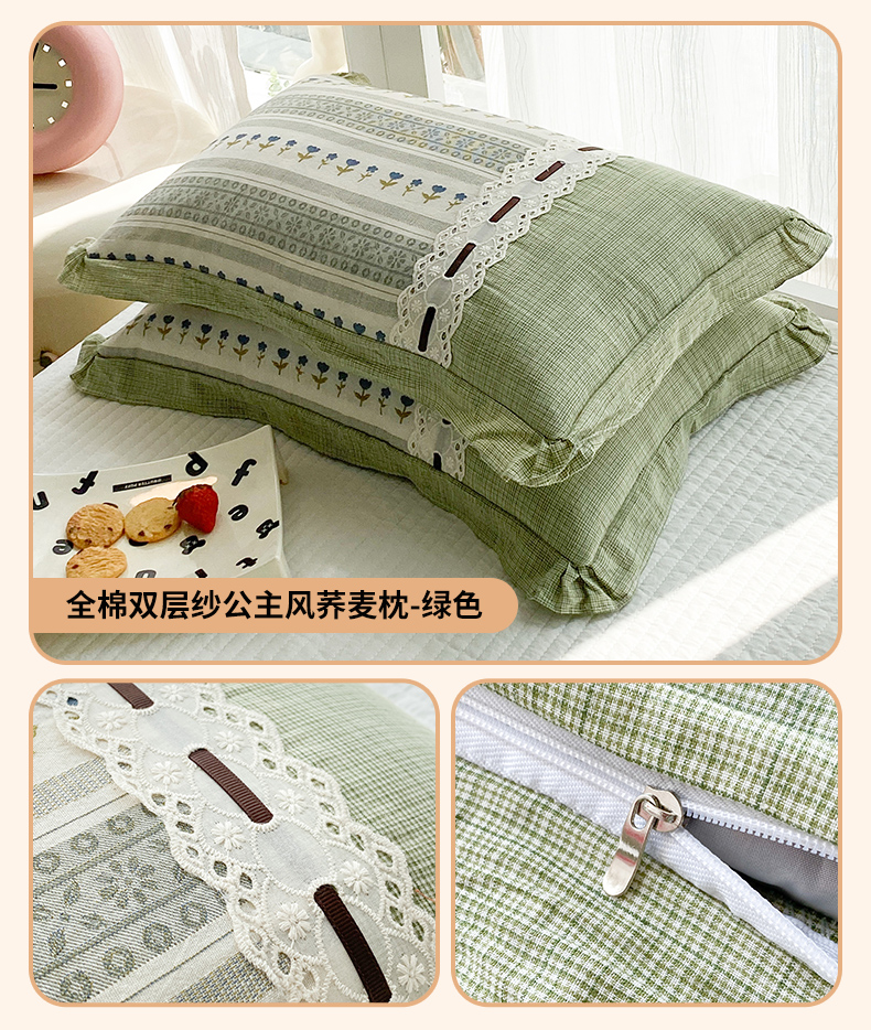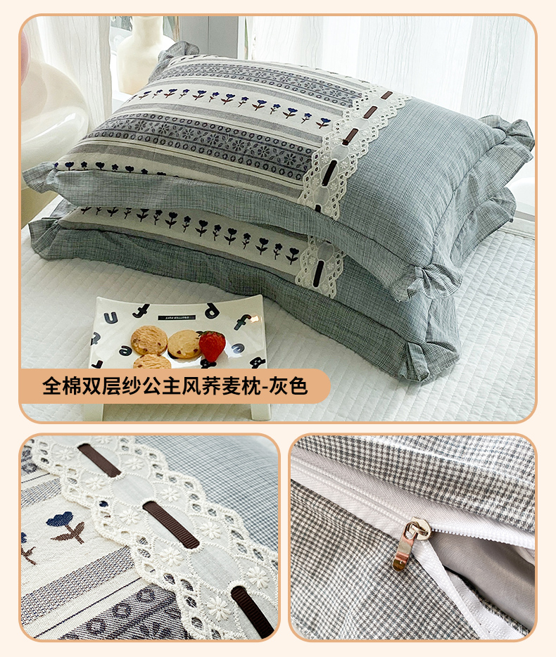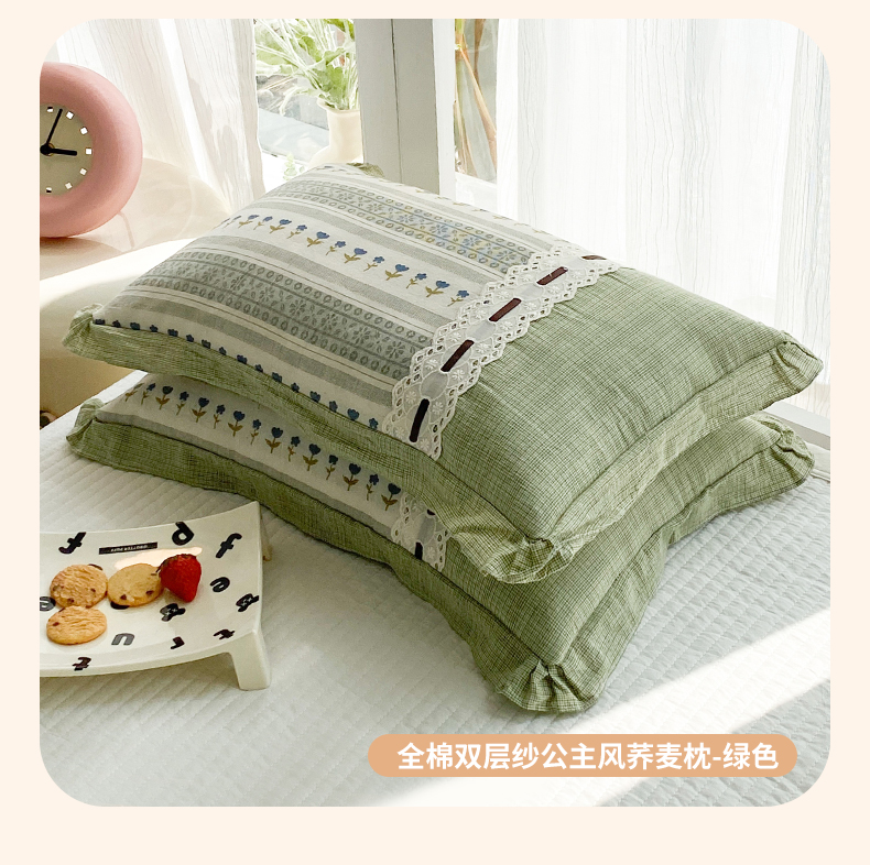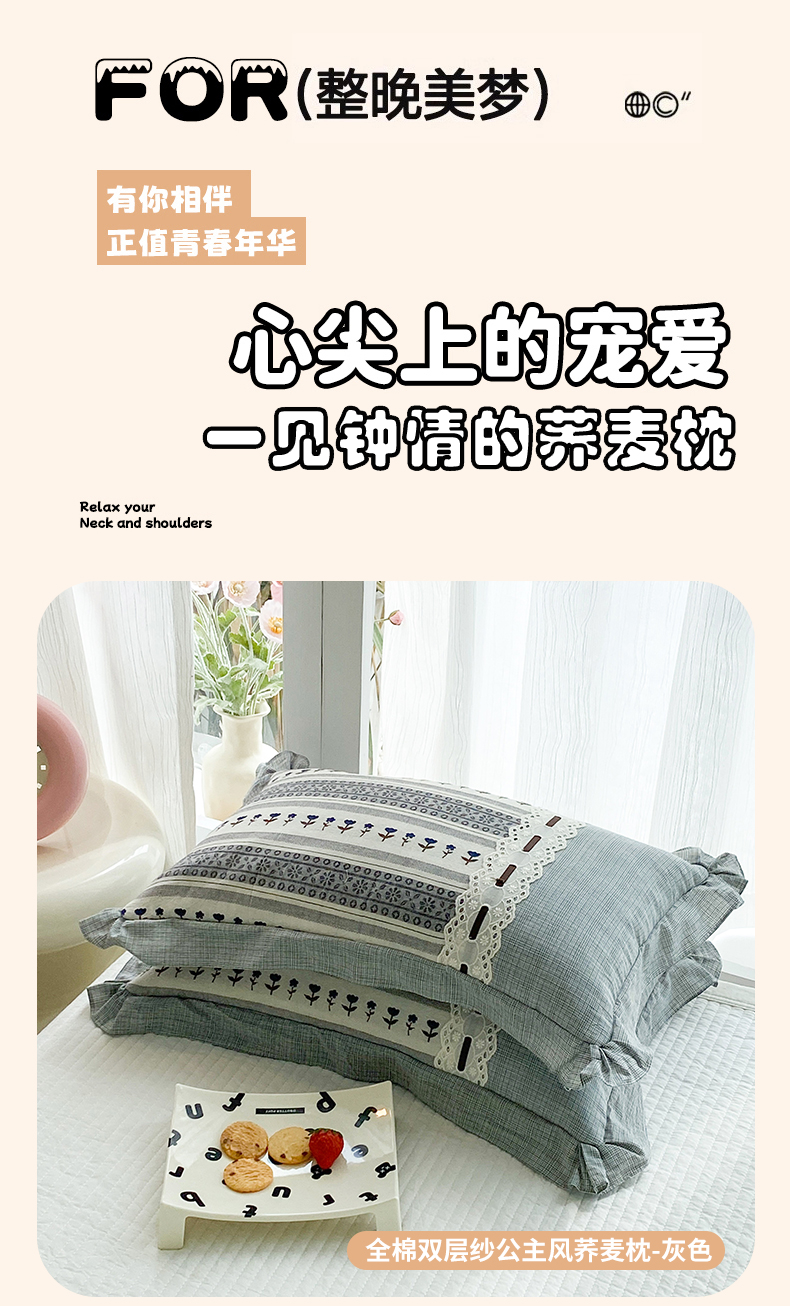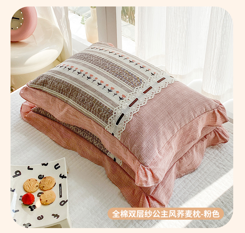 商品名称:梦叶草 2026新款全棉双层纱花边荞麦枕公主风荞麦枕头 全棉双层纱公主风荞麦枕-粉色