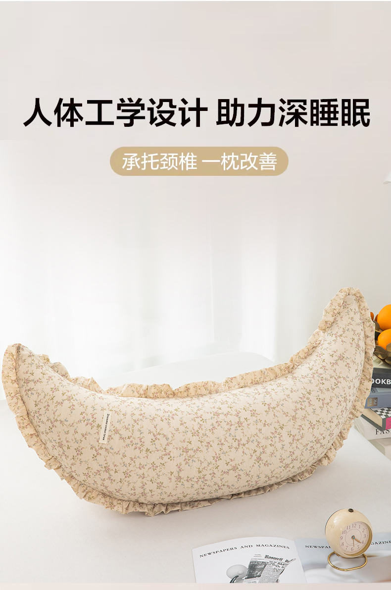 商品名称:梦叶草 2026新款全棉月亮枕加大情侣双人枕头 棉麻月亮枕-5号
