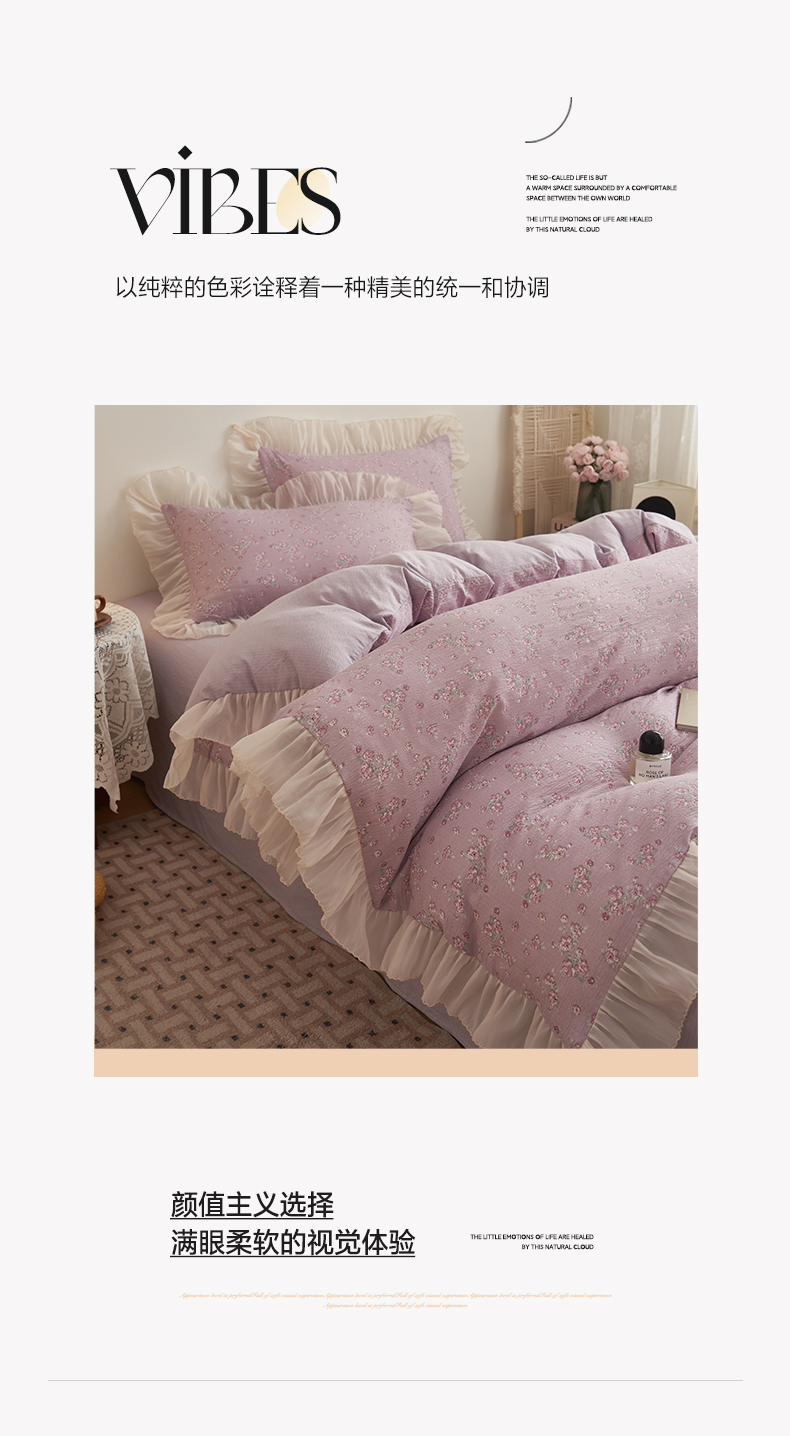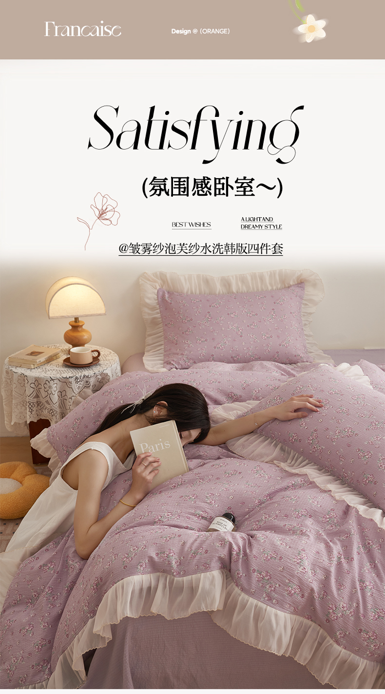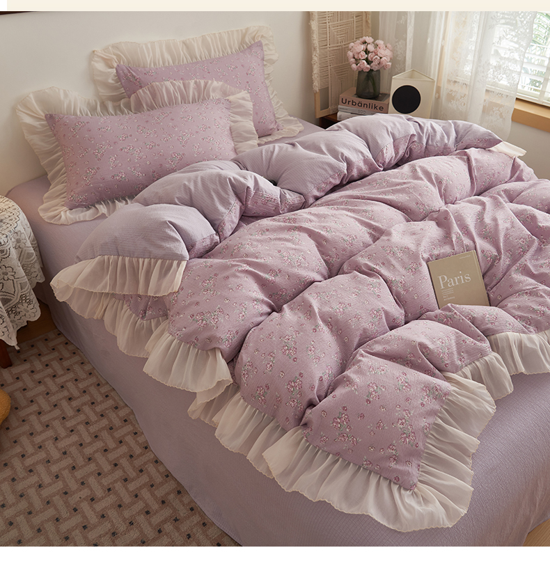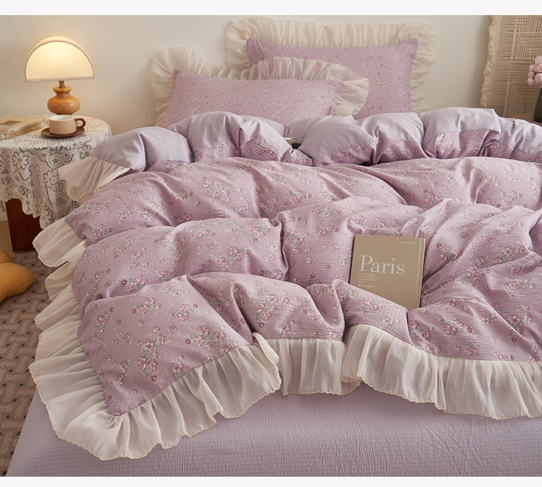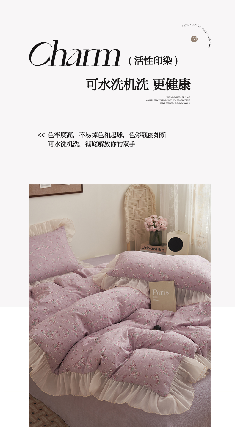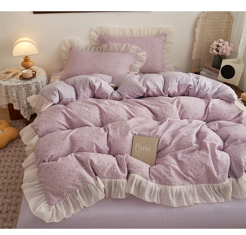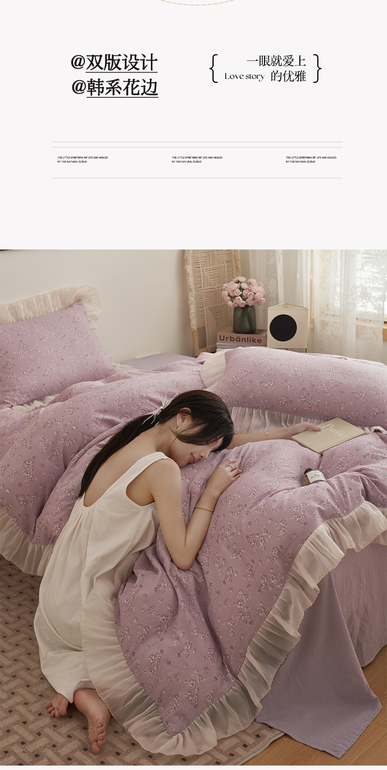 当前位置: 91家纺网 > 商品网购 > 床品套件 > 四件套 > 其它四件套 > 晨曦家纺 2026春夏新款皱雾纱泡芙纱水洗少女ins风韩版四件套 雾紫花信