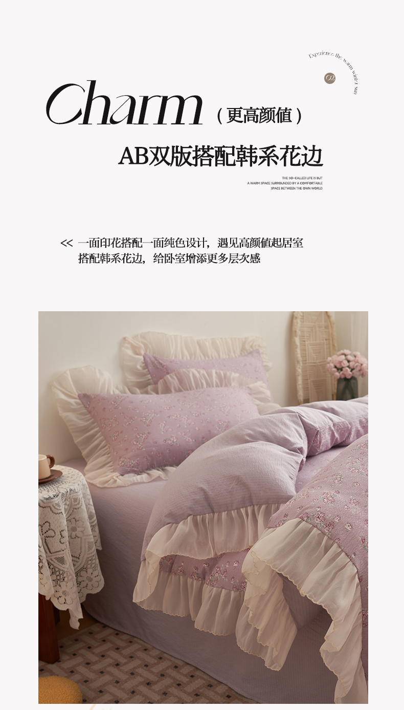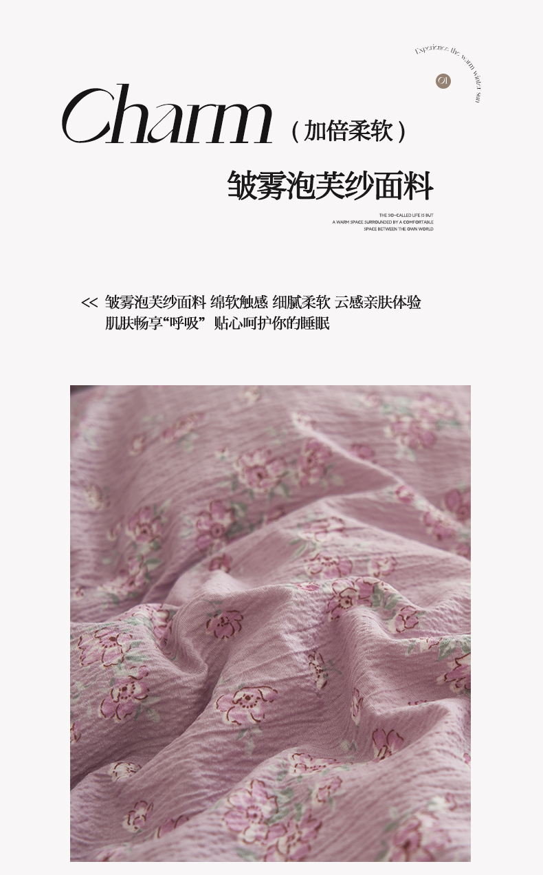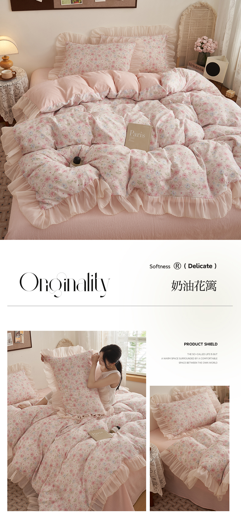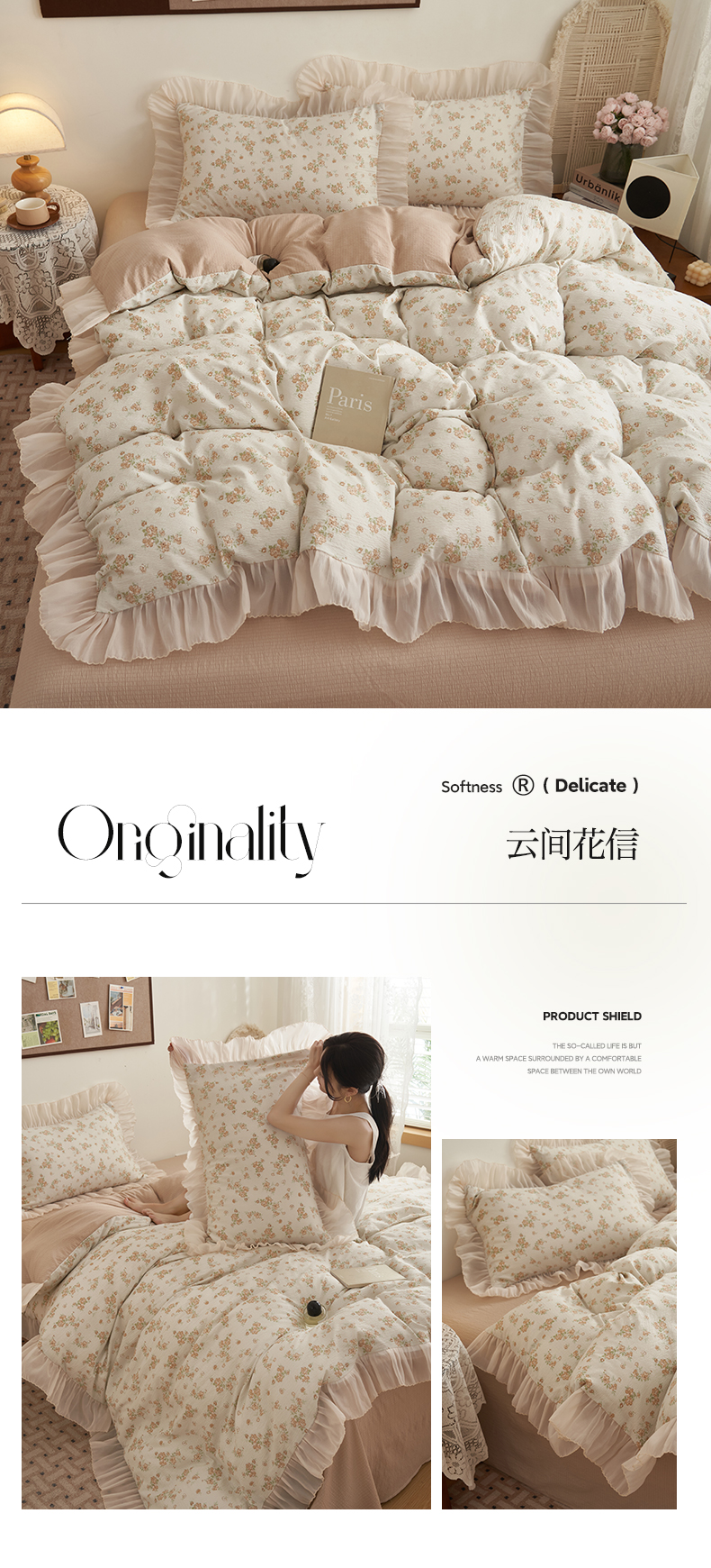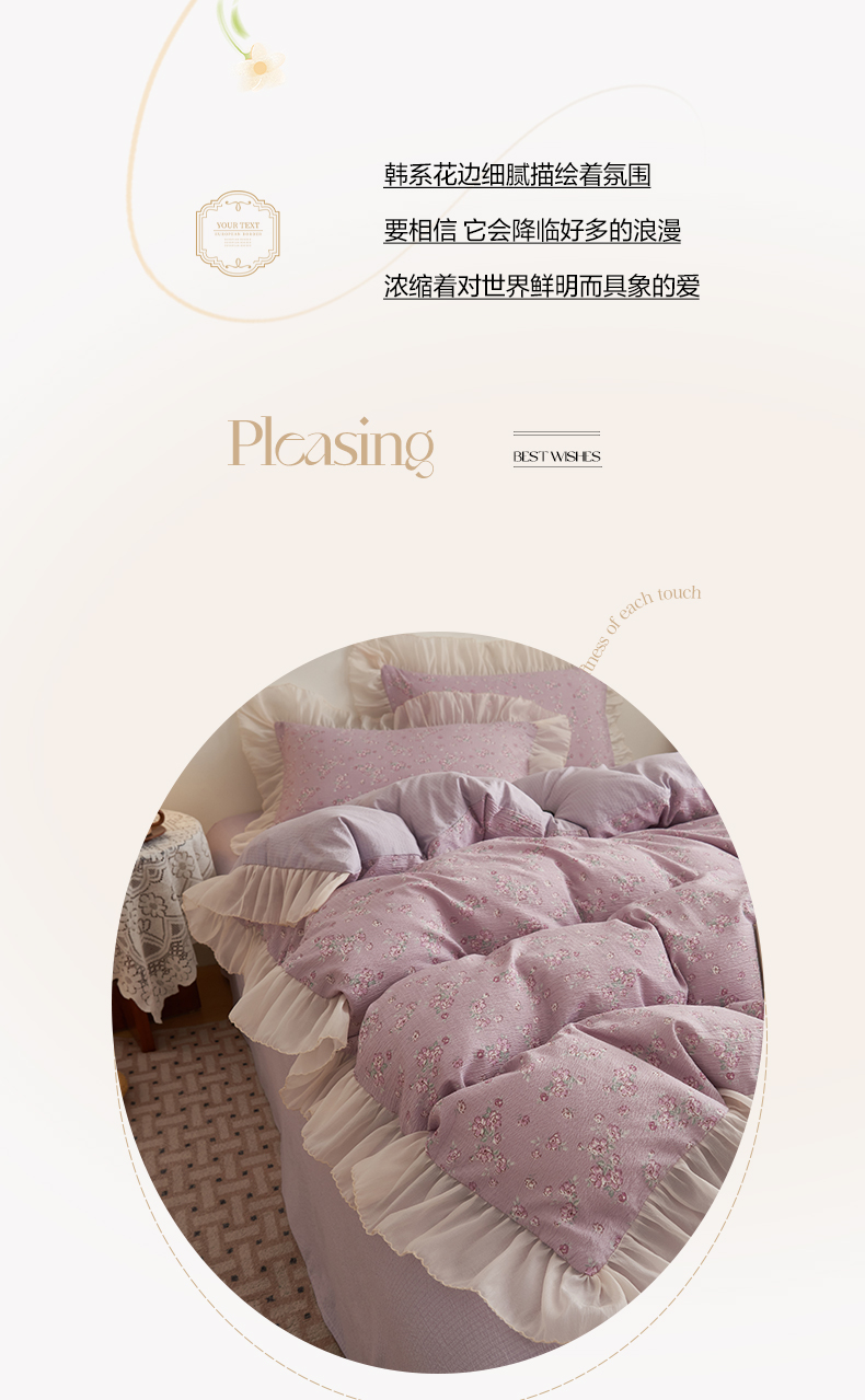当前位置: 91家纺网 > 商品网购 > 床品套件 > 四件套 > 其它四件套 > 晨曦家纺 2026春夏新款皱雾纱泡芙纱水洗少女ins风韩版四件套 雾紫花信