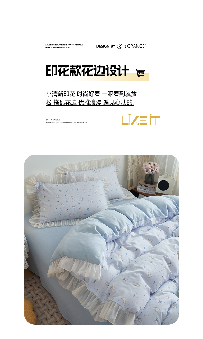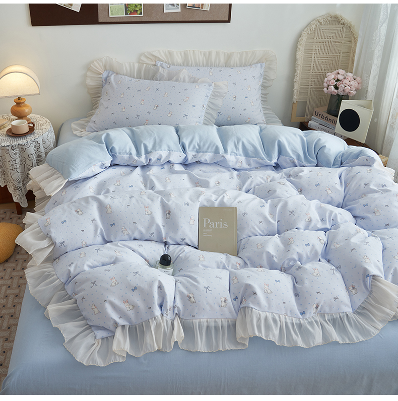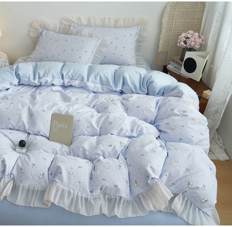 当前位置: 91家纺网 > 商品网购 > 床品套件 > 四件套 > 其它四件套 > 晨曦家纺 2026春夏新款雪花皱纱花边小碎花小清新少女风四件套 甜心兔蓝