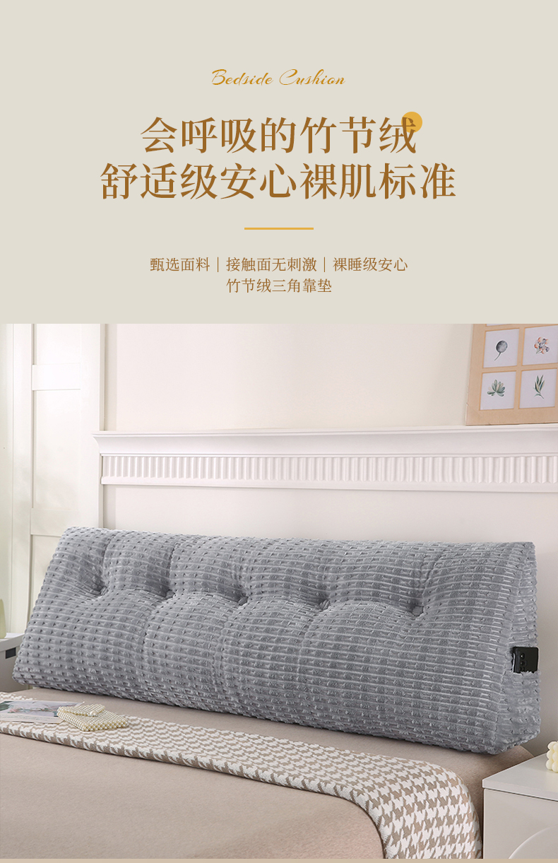 (总)永光家居 2026竹节绒三角靠垫床头靠枕抱枕大靠背,竹节 灰,竹节 白,竹节 蓝,竹节 卡其,竹节 绿
