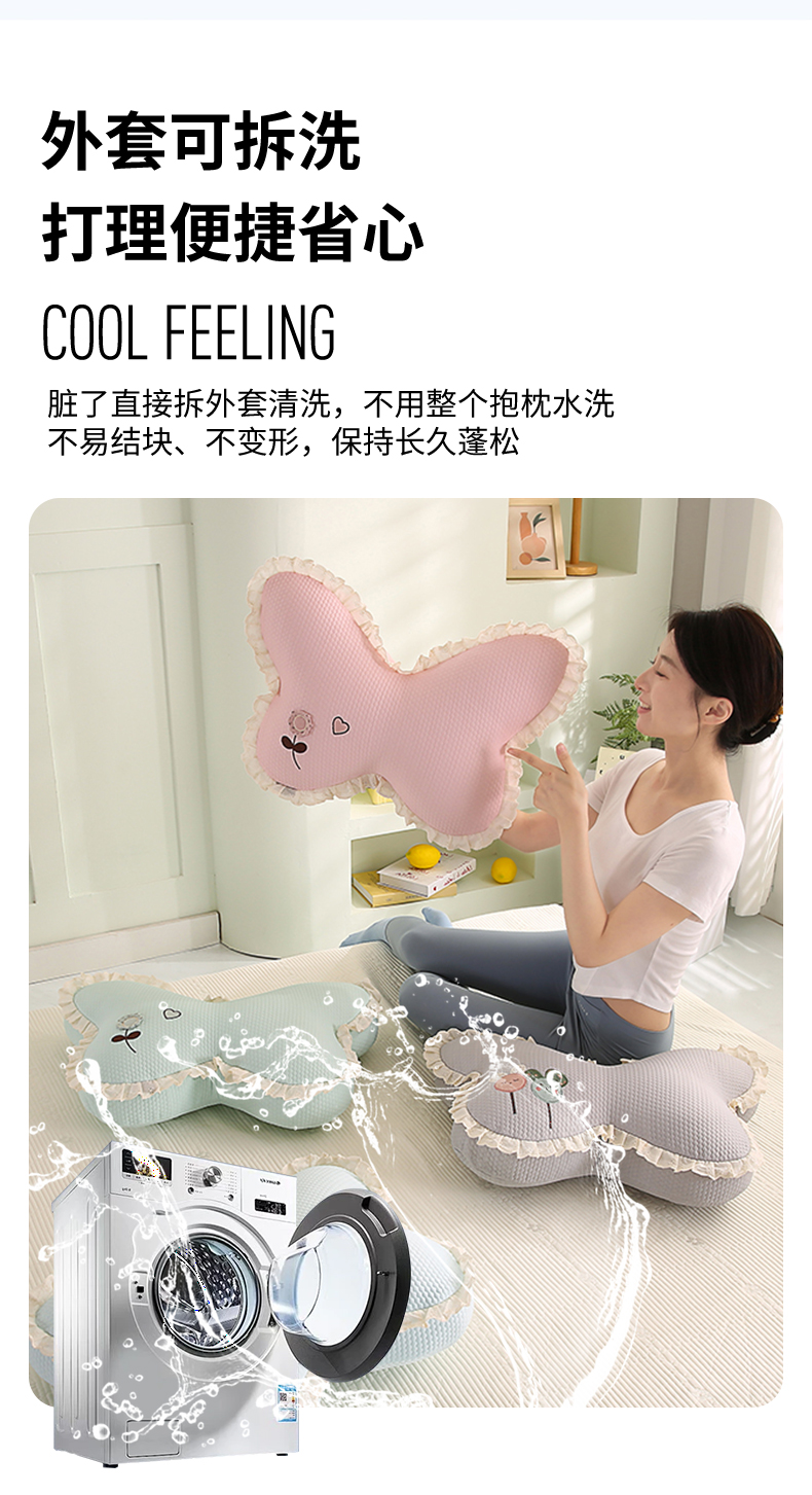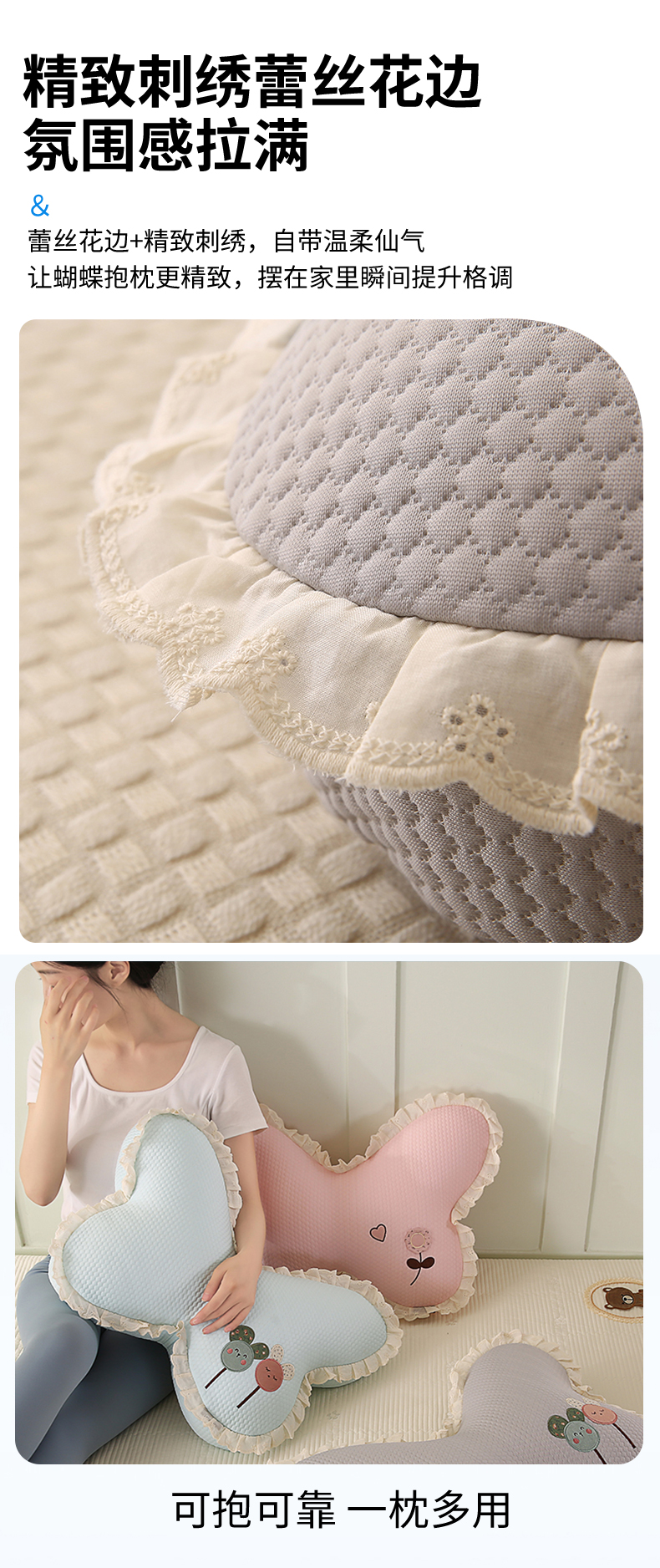 商品名称:蔻眠 花边款凉豆豆凉感丝蝴蝶抱枕靠枕异型枕芯 两小无猜-冰蓝