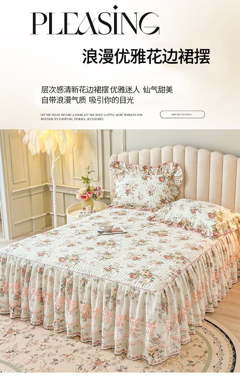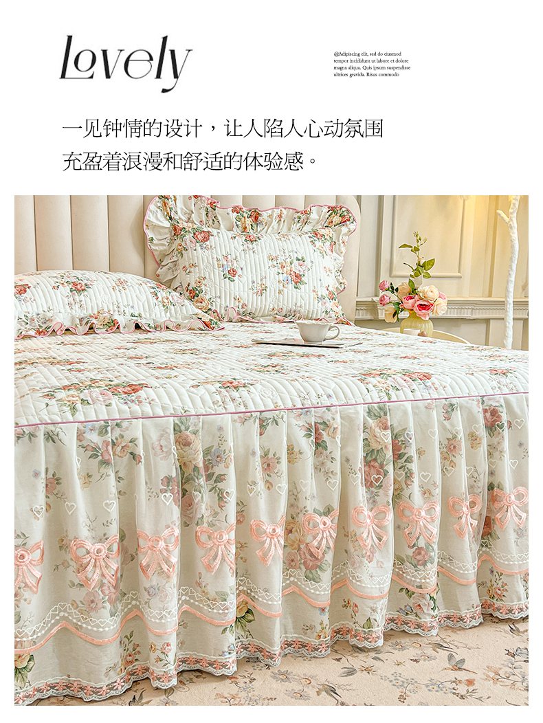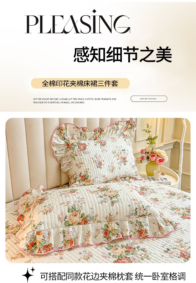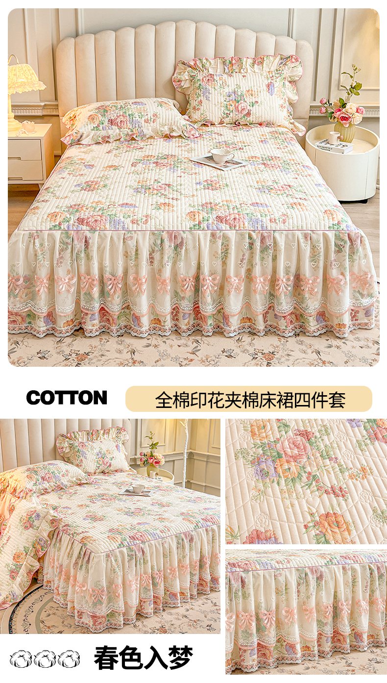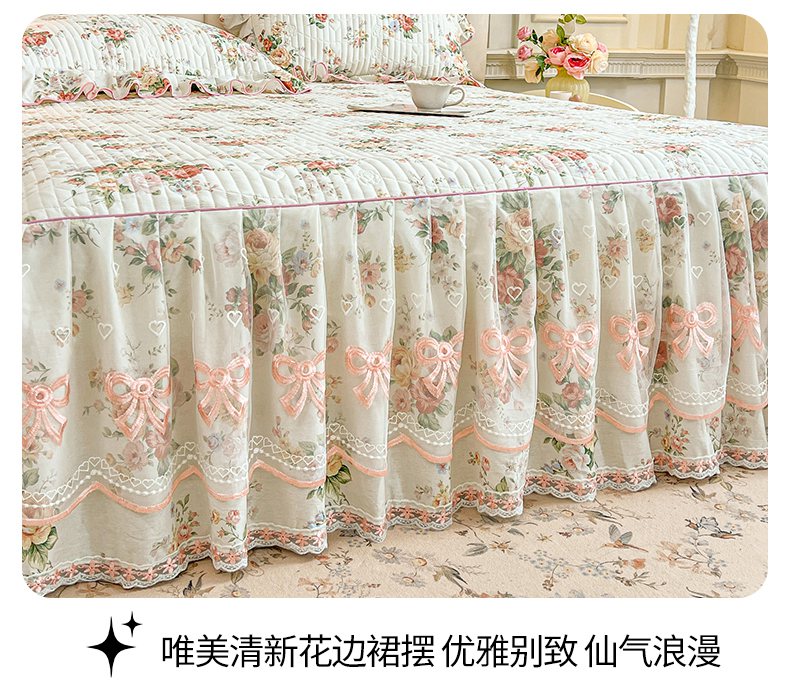 当前位置: 91家纺网 > 商品网购 > 床品套件 > 三件套 > 宜凡家纺 2026新款全棉印花公主风夹棉床裙三件套 洛川花海