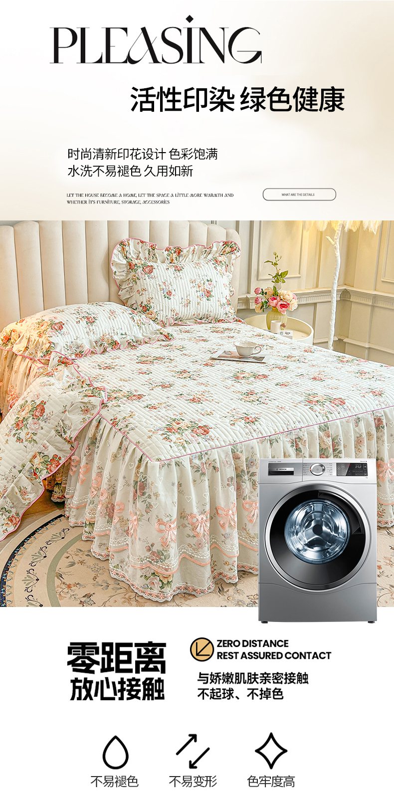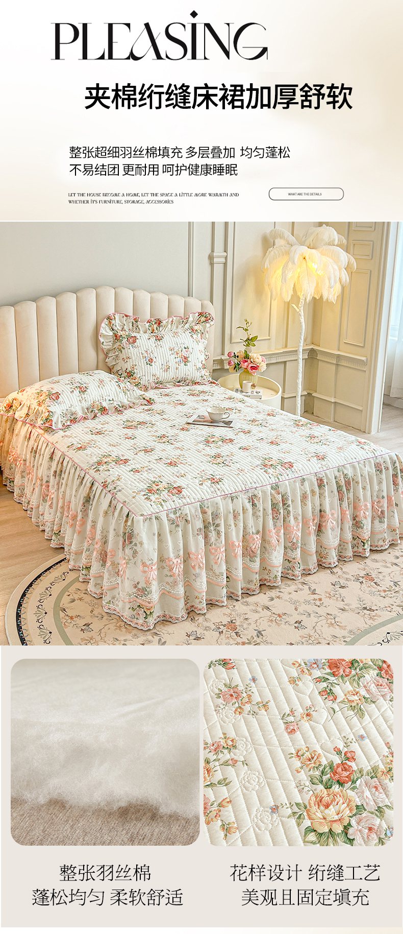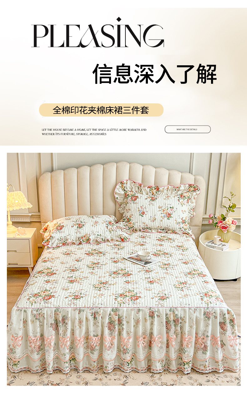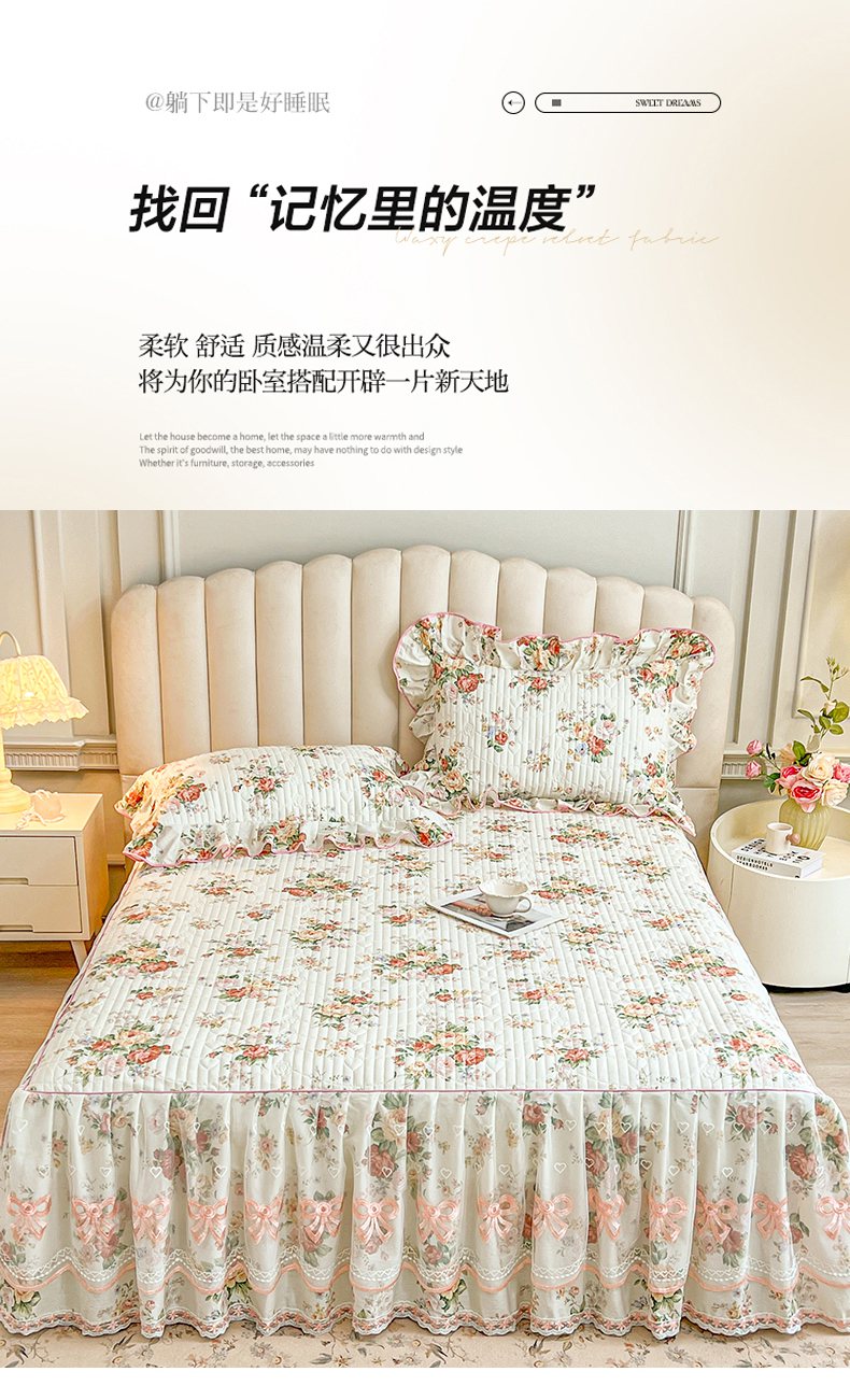当前位置: 91家纺网 > 商品网购 > 床品套件 > 三件套 > 宜凡家纺 2026新款全棉印花公主风夹棉床裙三件套 洛川花海