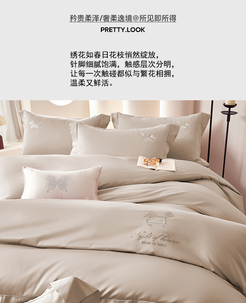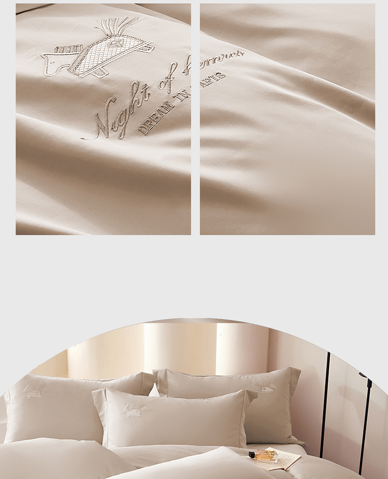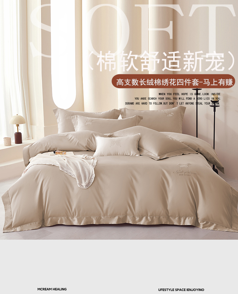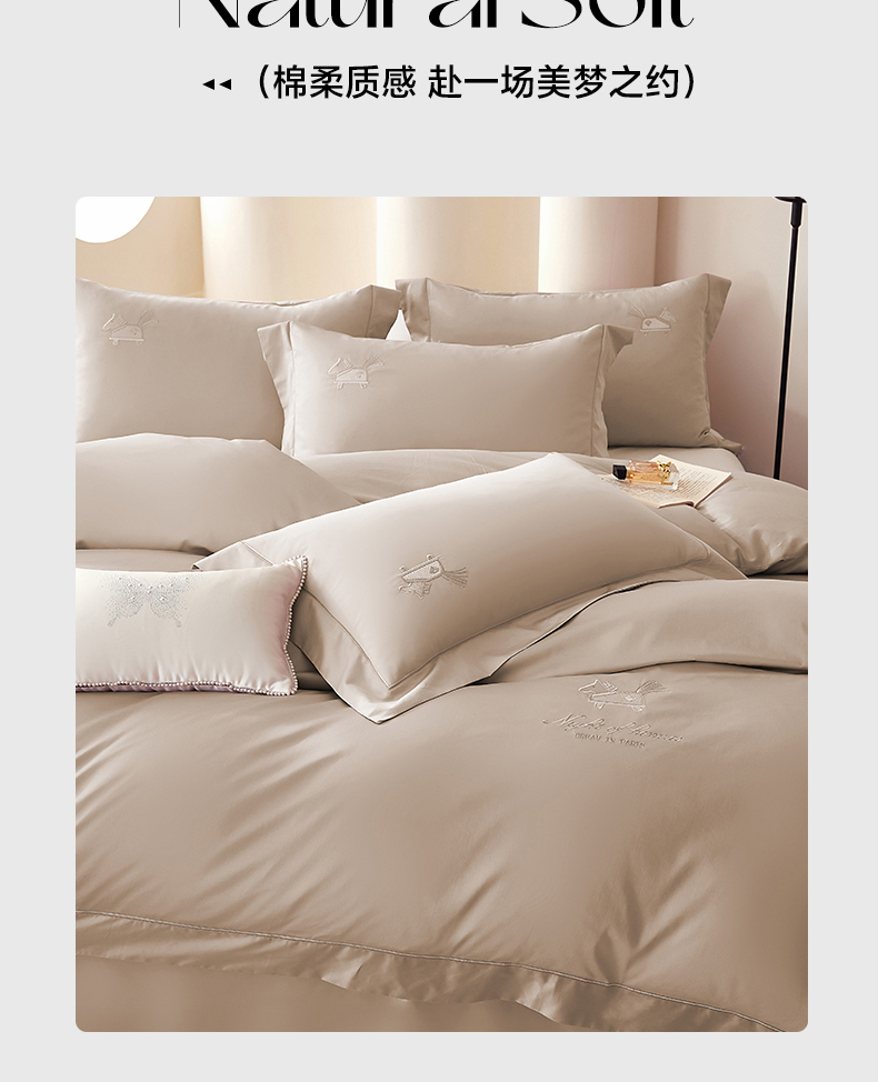 商品名称:蒂爵 2026新款高支数长绒棉纯棉刺绣四件套-马上有赚系列 浅卡其