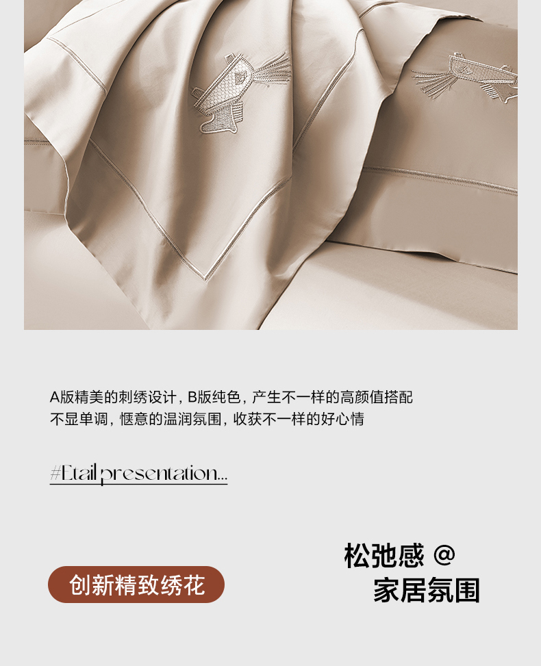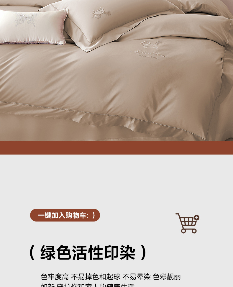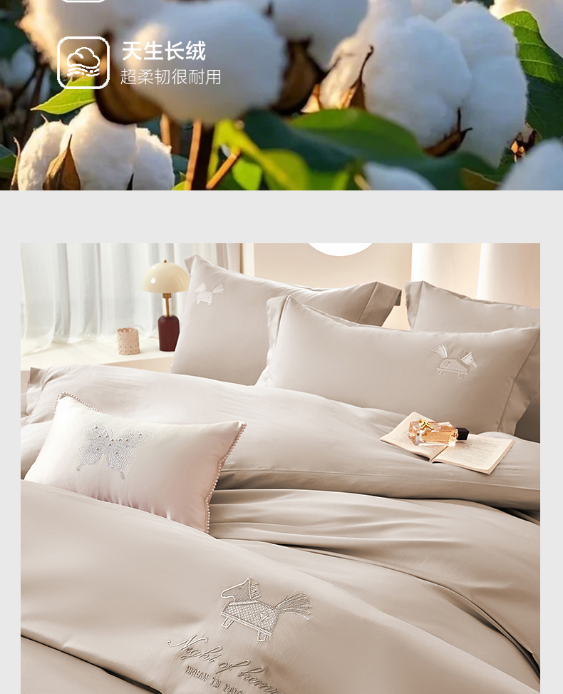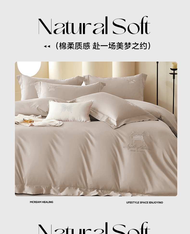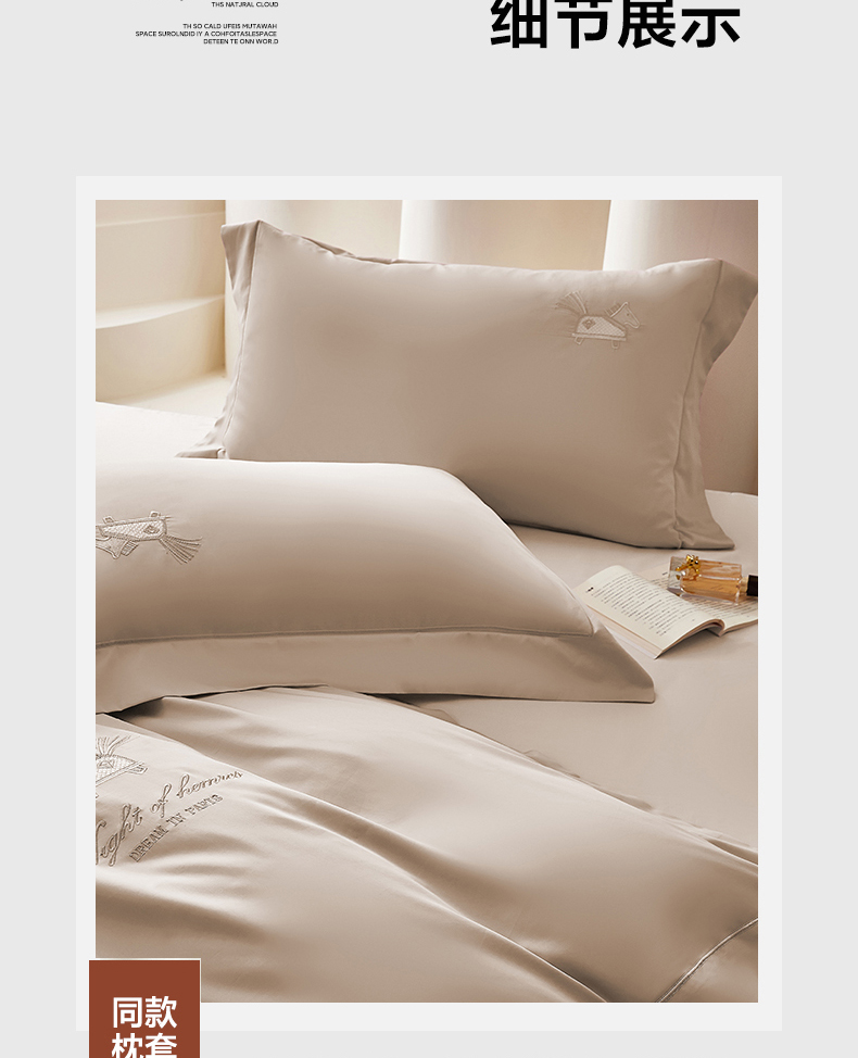 商品名称:蒂爵 2026新款高支数长绒棉纯棉刺绣四件套-马上有赚系列 浅卡其