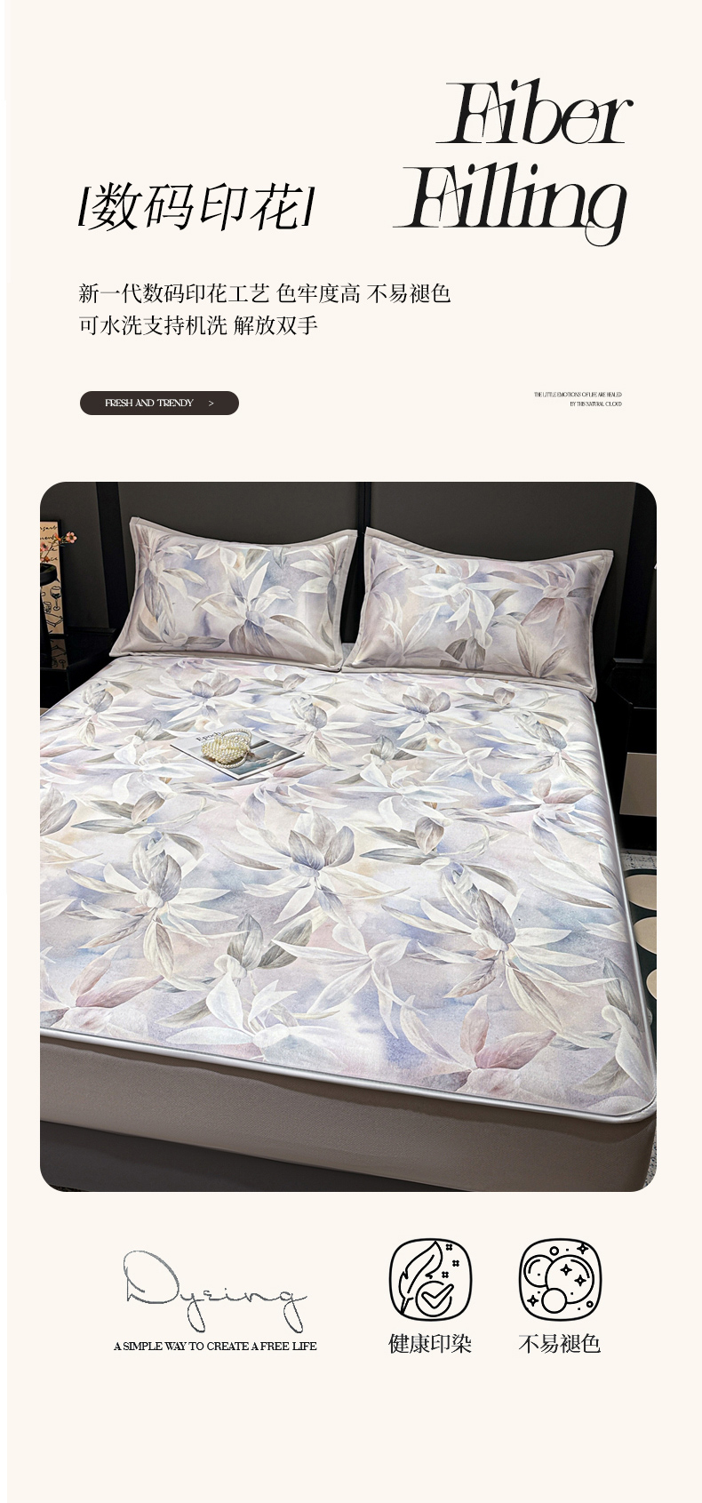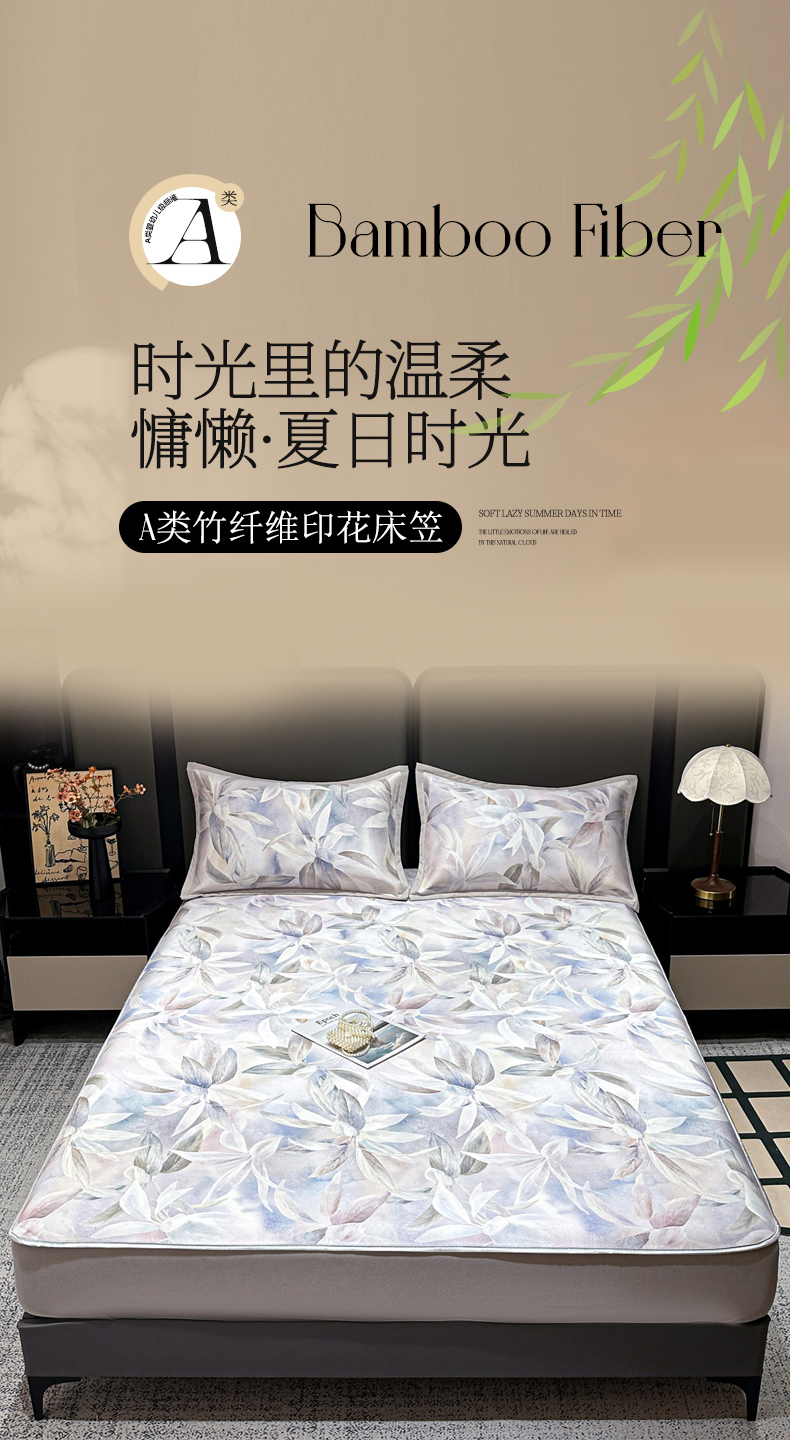 • 91家纺网 家纺一手货源 找家纺 富馨莱 2026新款高端竹纤维床笠款软凉席三件套夏季凉席席子 蝶韵