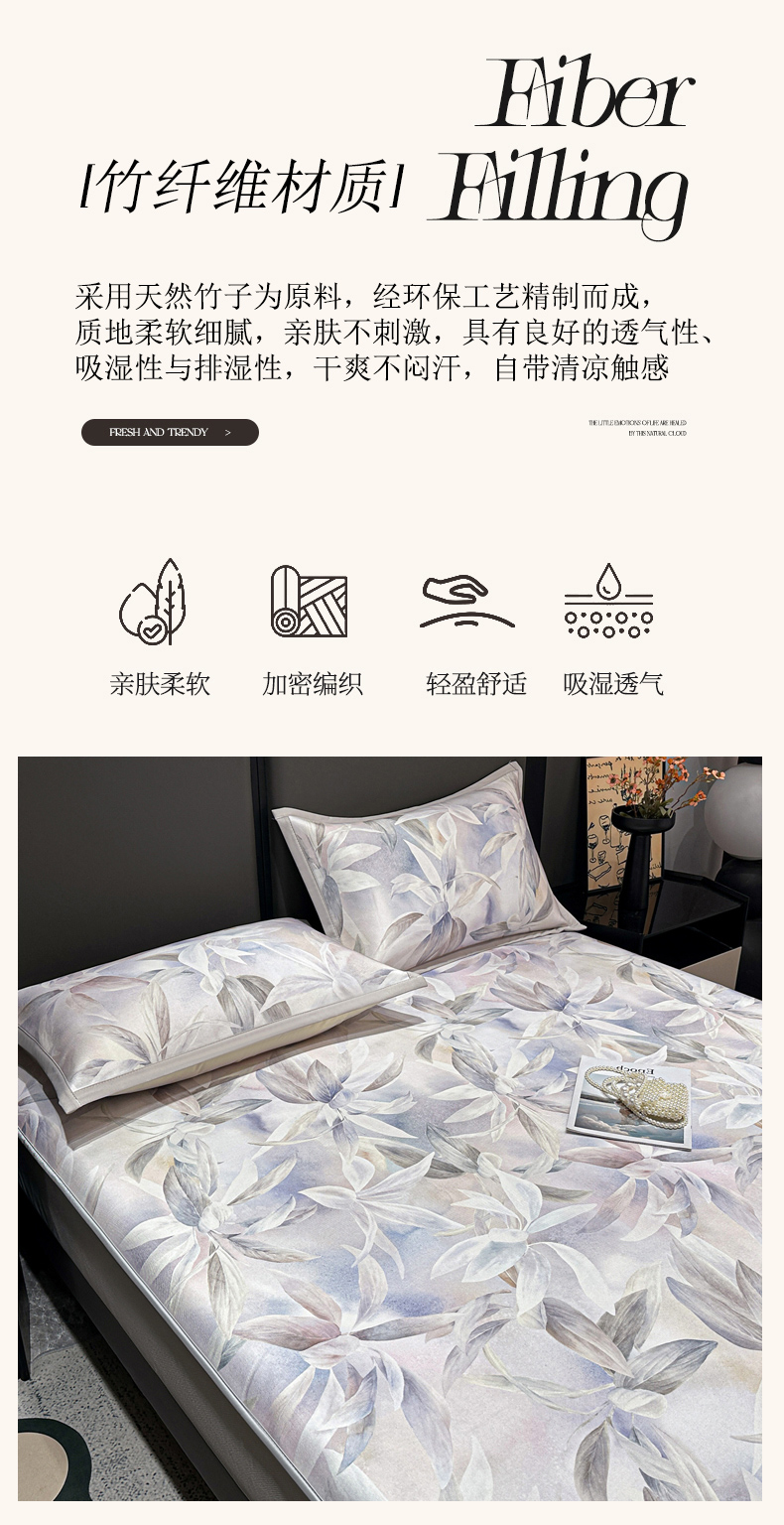(总)富馨莱 2026新款高端竹纤维席子平铺款软凉席三件套夏季凉席席子,组合图仅供参考不可下单,安利熊,驰野听风-粉,驰野听风-灰绿,蝶韵,山间晚风,维度空间,星月交辉,竹子熊猫