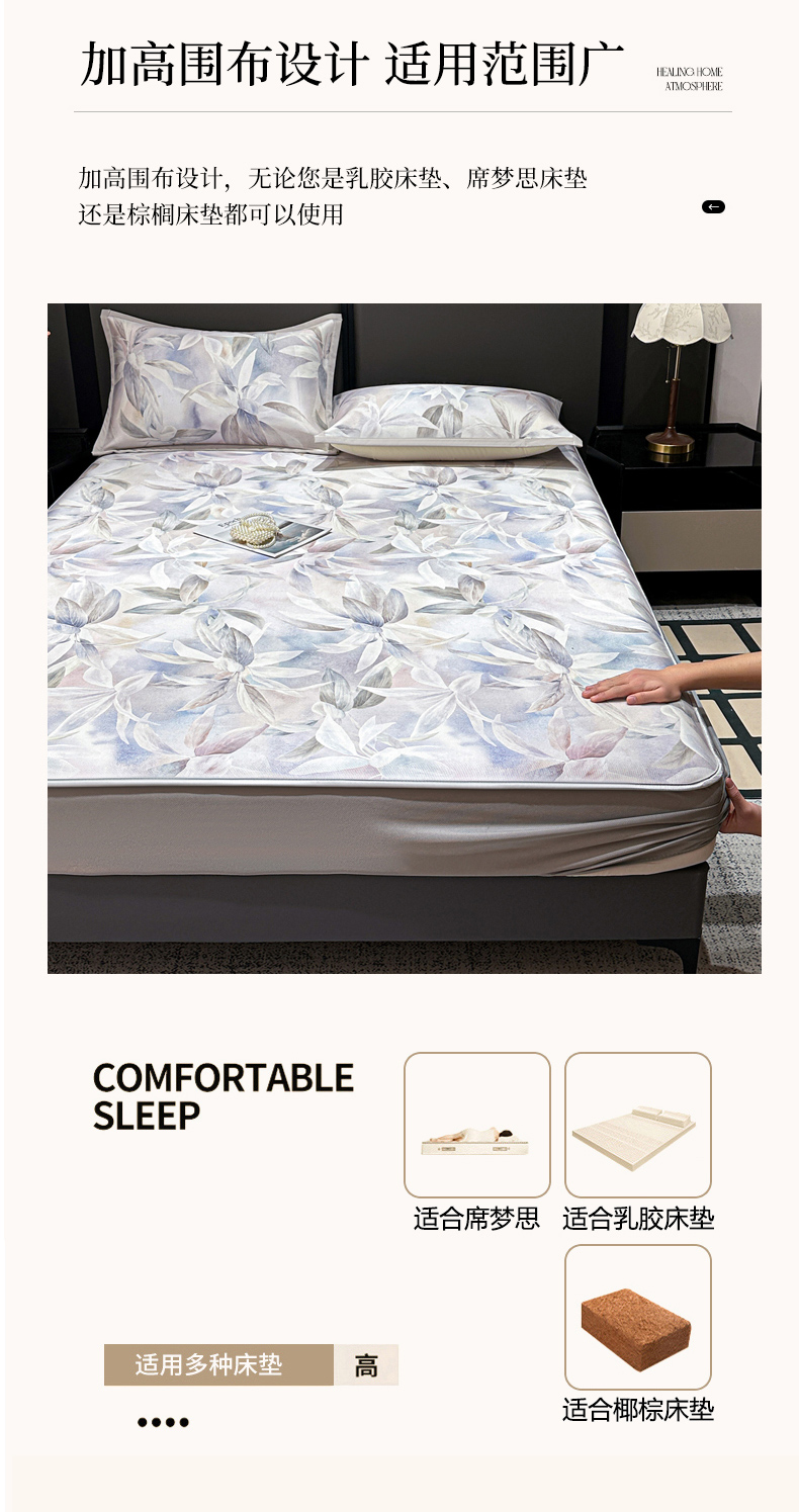 (总)富馨莱 2026春夏新款PE乙纶高克重冰豆豆席凉感凉席单件床裙三件套支持一件定做尺寸,组合图仅供展示不可下单,爱意满满-粉,波纹-绿,草莓乐园-床裙款,花蝶-灰,寻意-灰