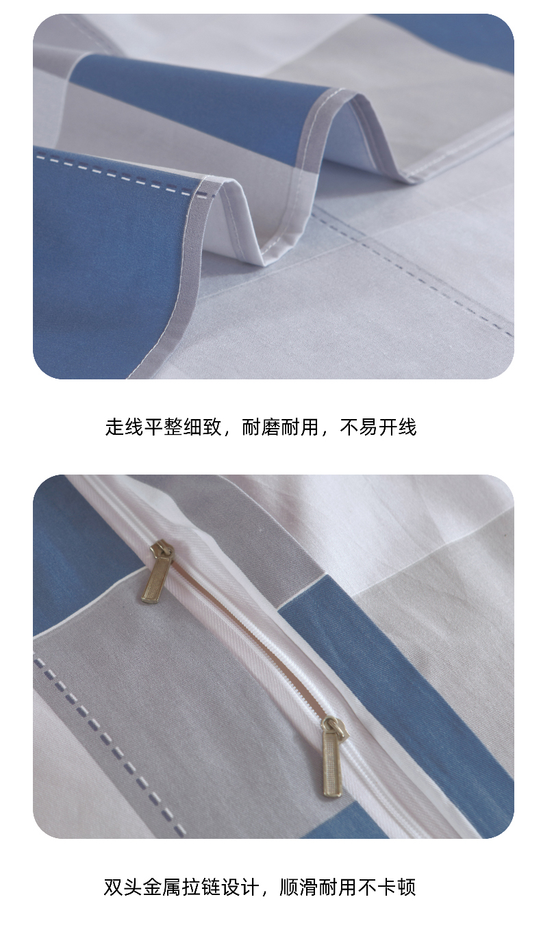(总)雅绅阁 2024新款学生宿舍医疗专用涤棉三六件套,白色缎条,蓝条