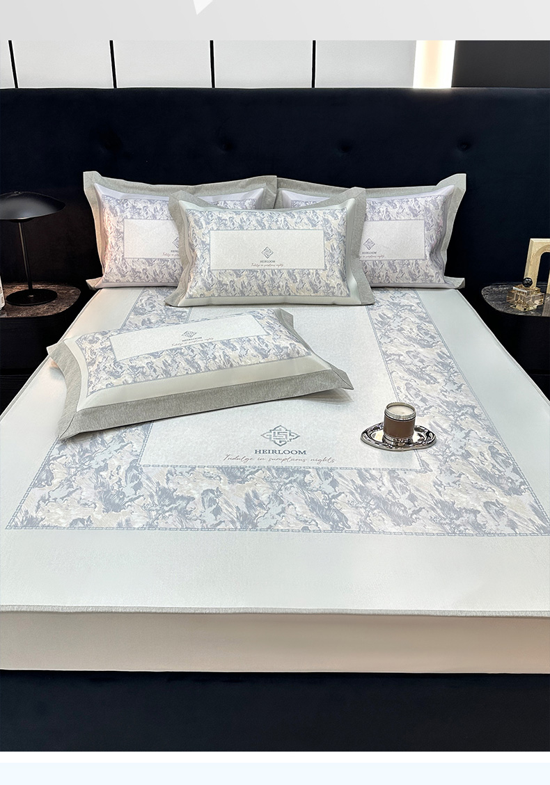 • 91家纺网 家纺一手货源 找家纺 JUICY 橘滋家纺 2026年夏日新款高端简约意式轻奢数码冰丝席凉席 床笠款-星夜秩序-贝母蓝
