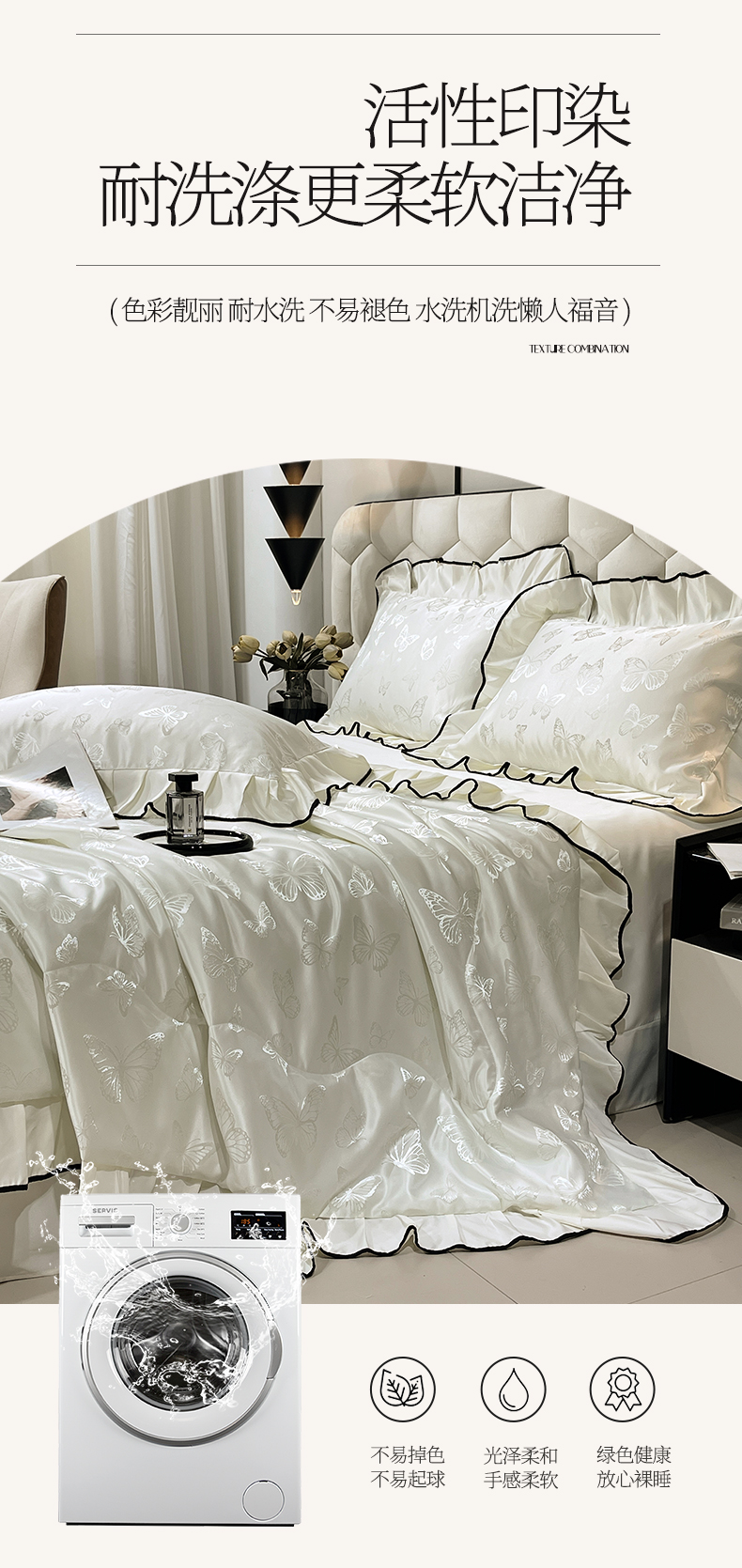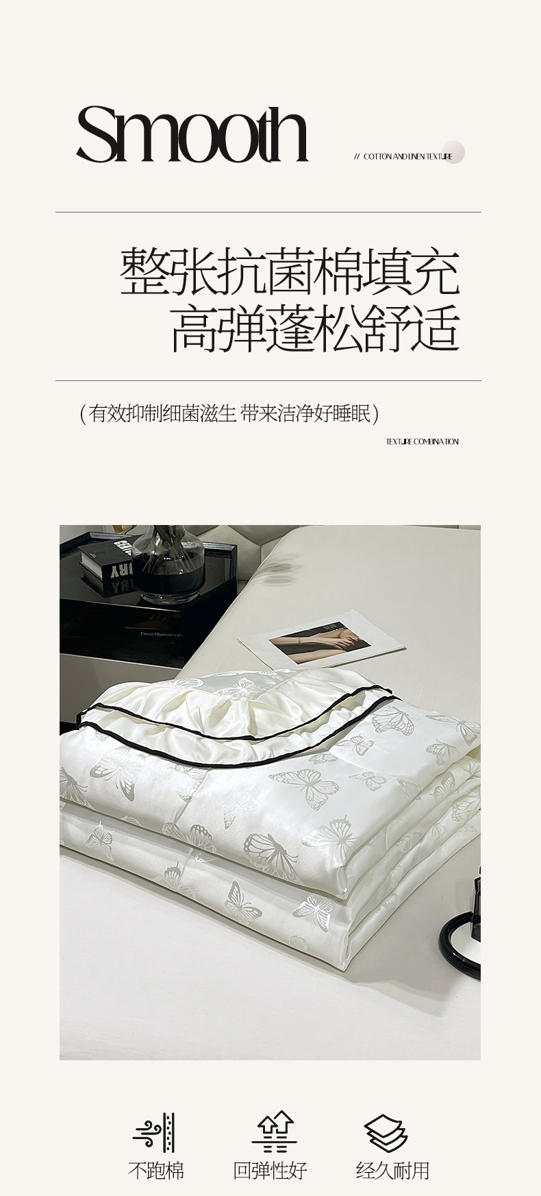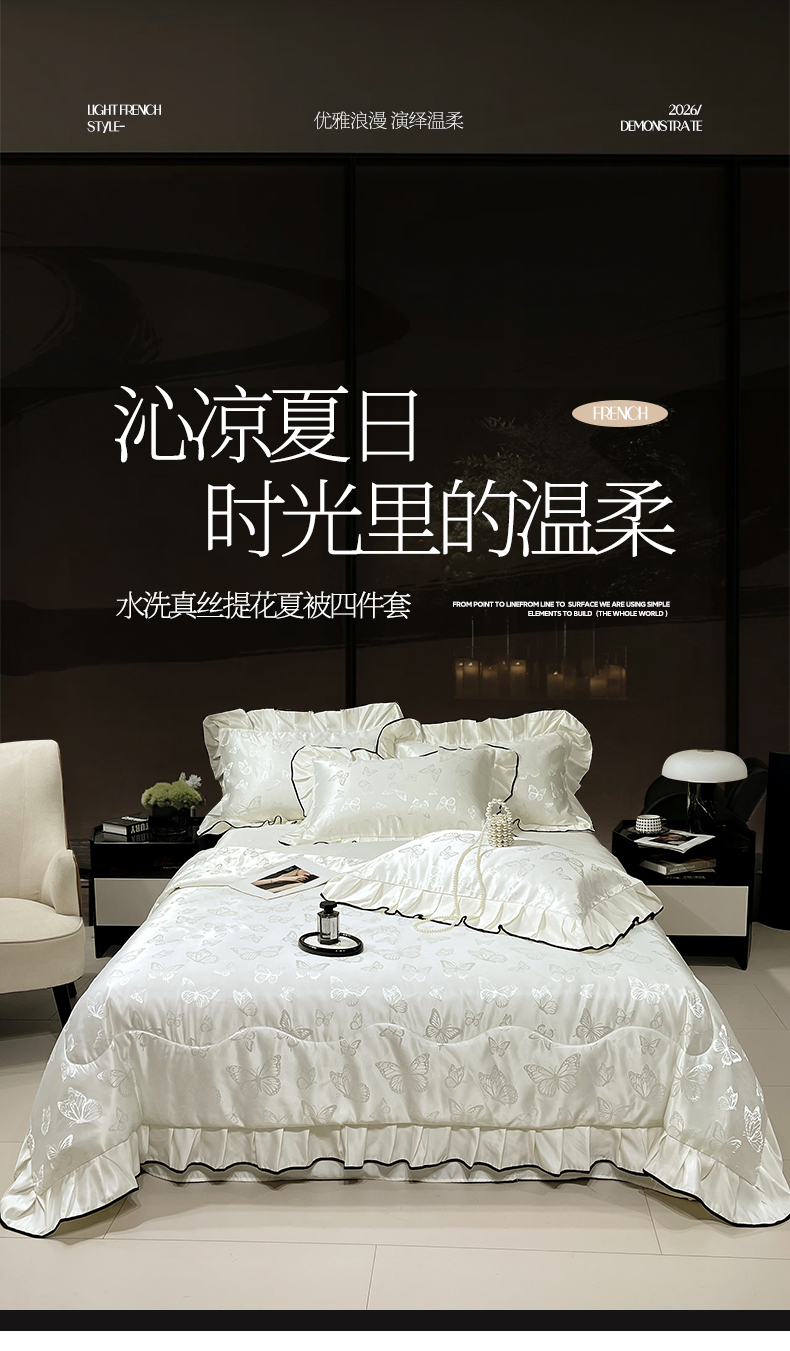 商品名称:慕希家纺 2026新款水洗真丝提花夏被夏凉被空调被-蝶序系列 蝶序-霜白