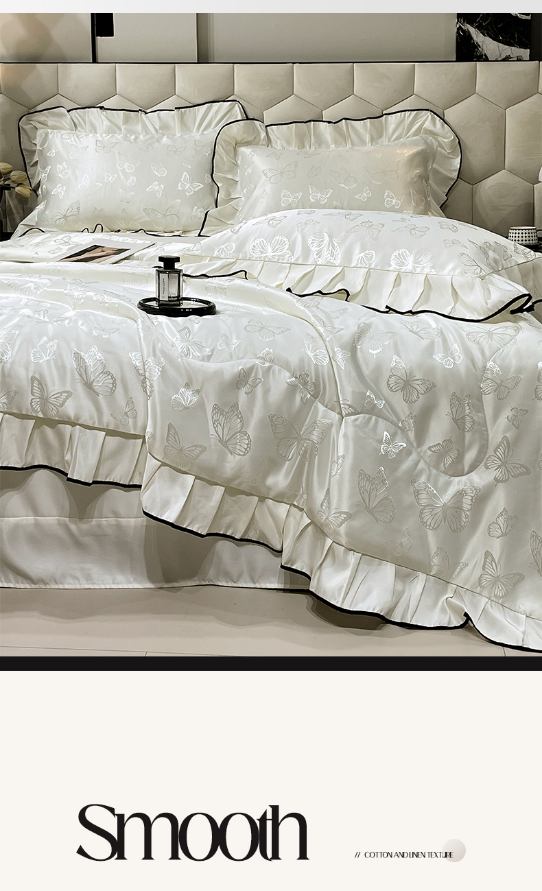 慕希家纺 2026新款水洗真丝提花夏被夏凉被空调被-蝶序系列 蝶序-霜白