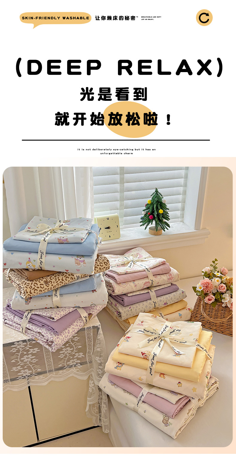 (总)温眠家纺 2026新款亲肤舒适甄选三层纱印花套件系列四件套,贩卖夏风-蓝,花丛点点猫,樱桃蝴蝶,蕾丝熊,葡萄腊肠狗,糖豆腊肠狗,星月天空,樱桃物语,雨爱,圆舞曲,芭乐米菲,彩波波,彩虹世界,动物团团,莓果结,梅森粉,莫奈-咖,沐风,秋月梨,小狗集合会,小黑豆,小花点点,幸运星,南瓜派,复古修狗,碱水结,蓝莓小猫,玫瑰夜-绿