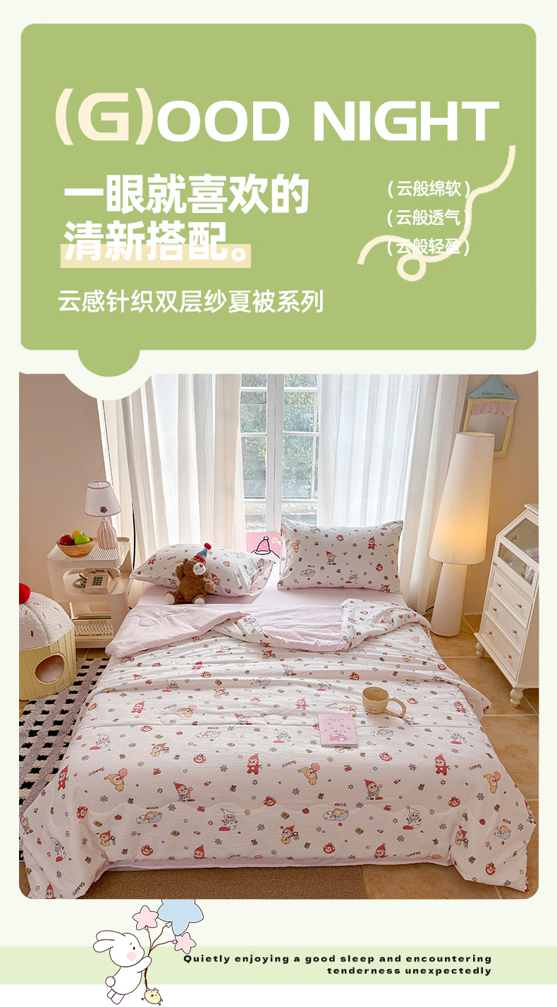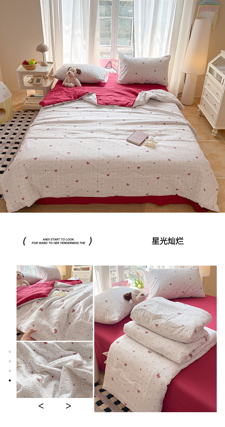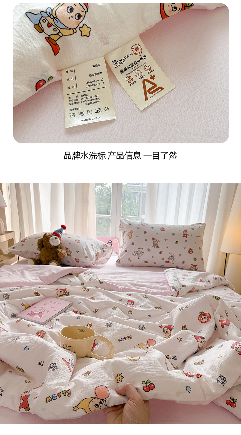(总)温眠家纺 2026新款针织泡芙双层纱夏被四件套,组合图,彩虹木马,彩虹小波点,粉蝴蝶结,花田猫咪,花织,蓝条木马,礼物盒,萌趣伙伴,魔法精灵,墨蝶,蔷薇玫瑰,青野玫瑰,森语萌宠,苏夏,甜果乐园,甜梦格,童年,小森系,小熊日记,星光灿烂,星光萌马,星空点点,星空里,紫蝶