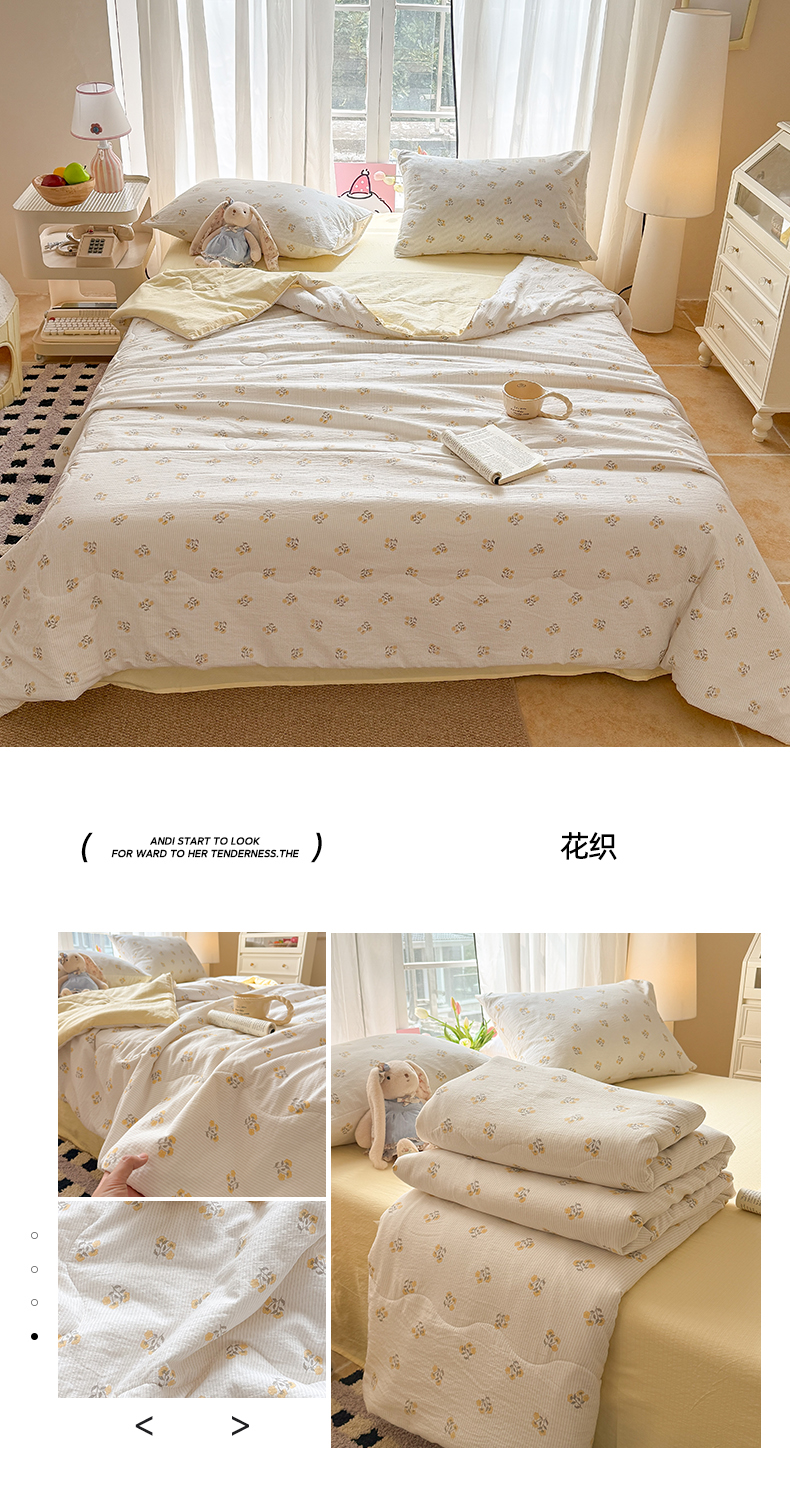 商品名称:温眠家纺 2026新款针织泡芙双层纱夏被四件套 礼物盒