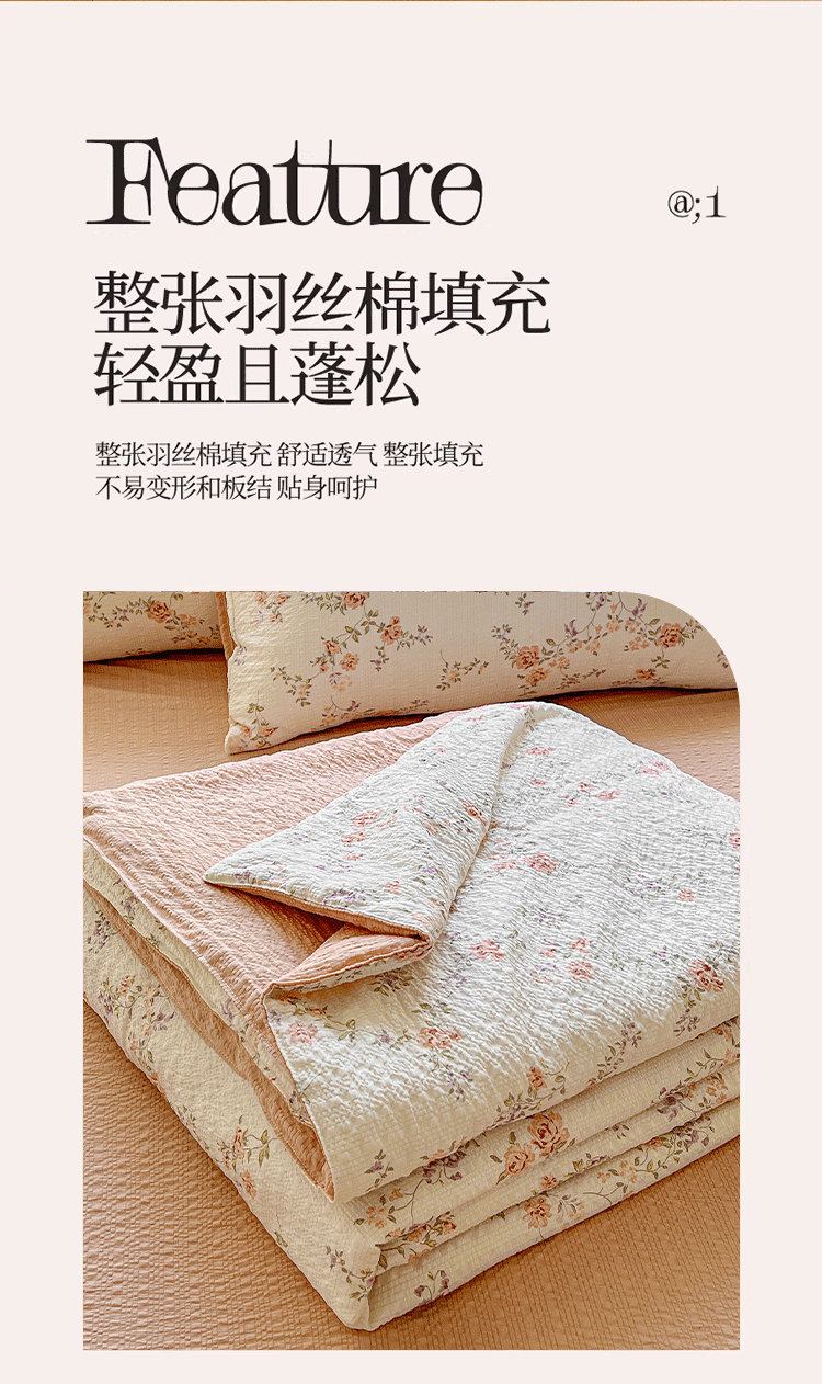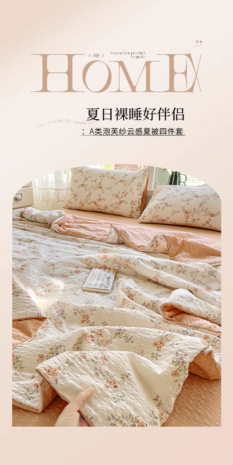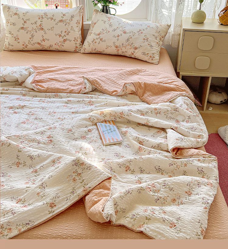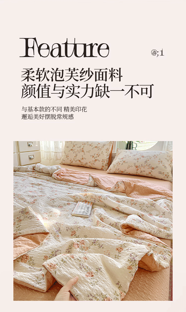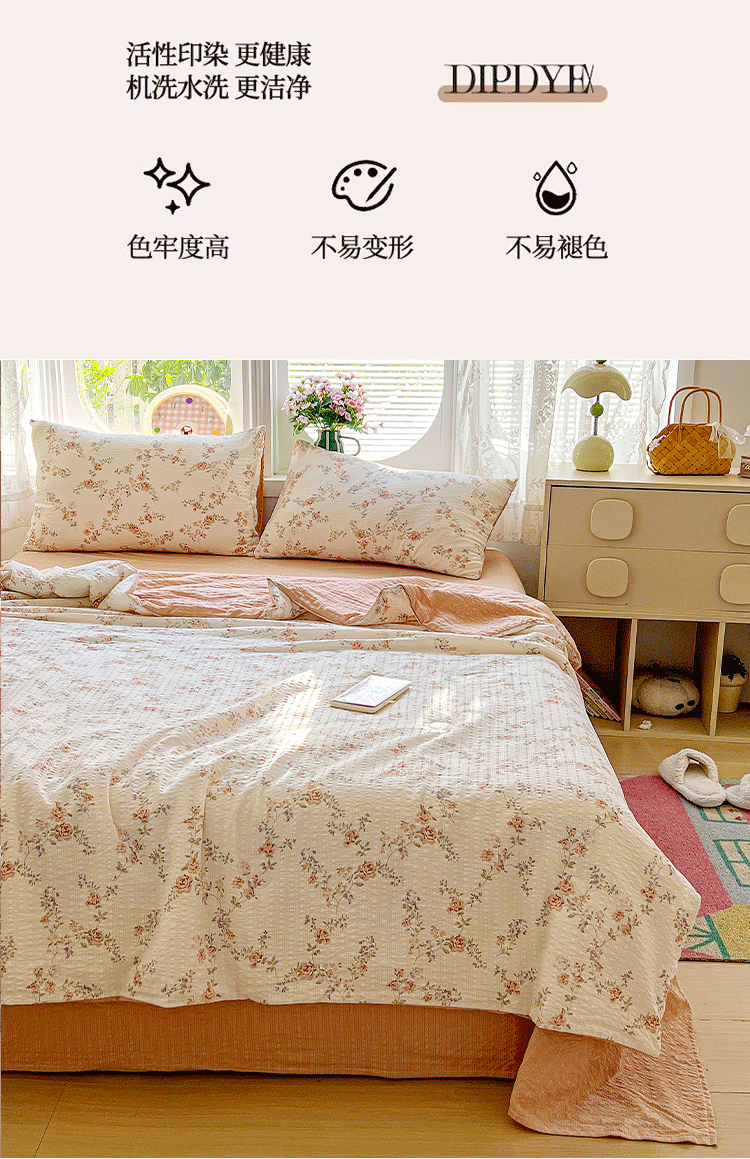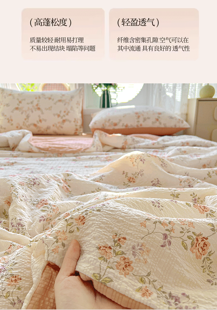 商品名称:小桃姐家纺 2026新款泡芙棉双层纱夏被空调被四件套小清新泡泡纱夏被卡通夏凉被空调被 初晴