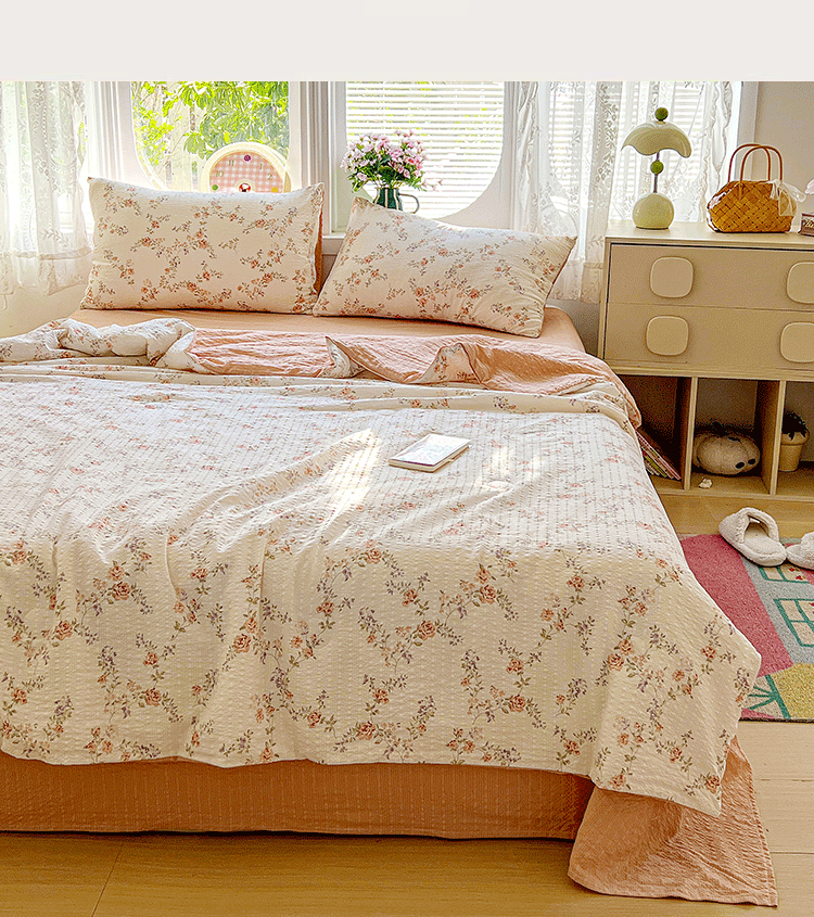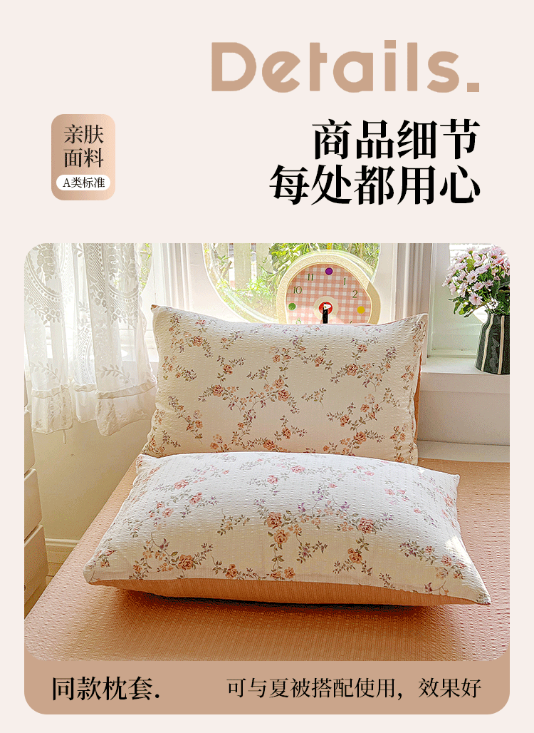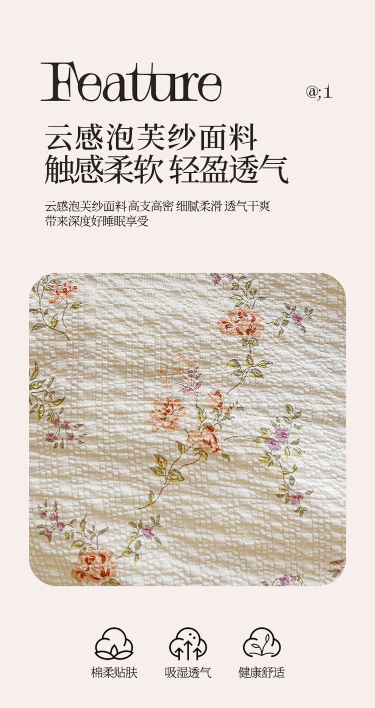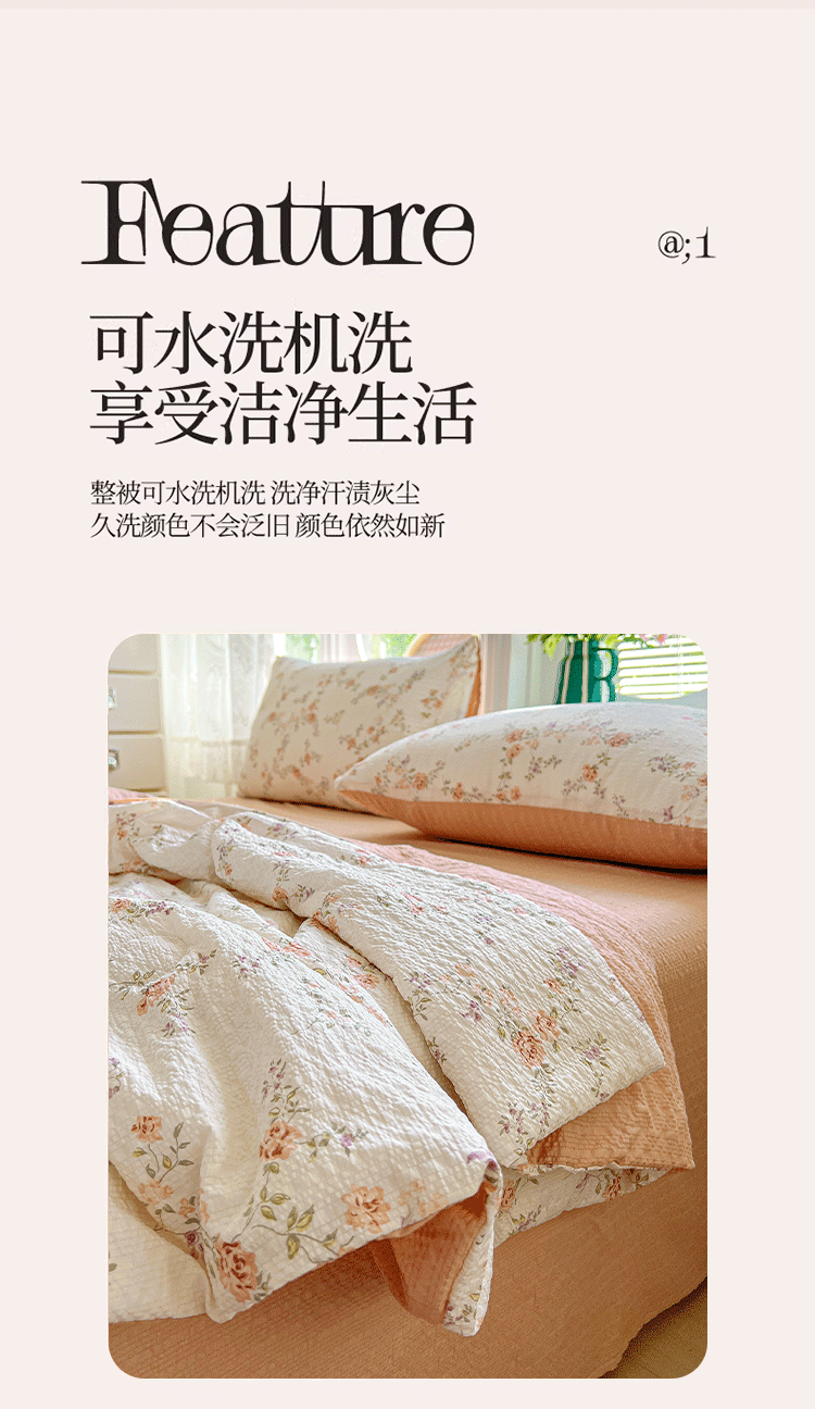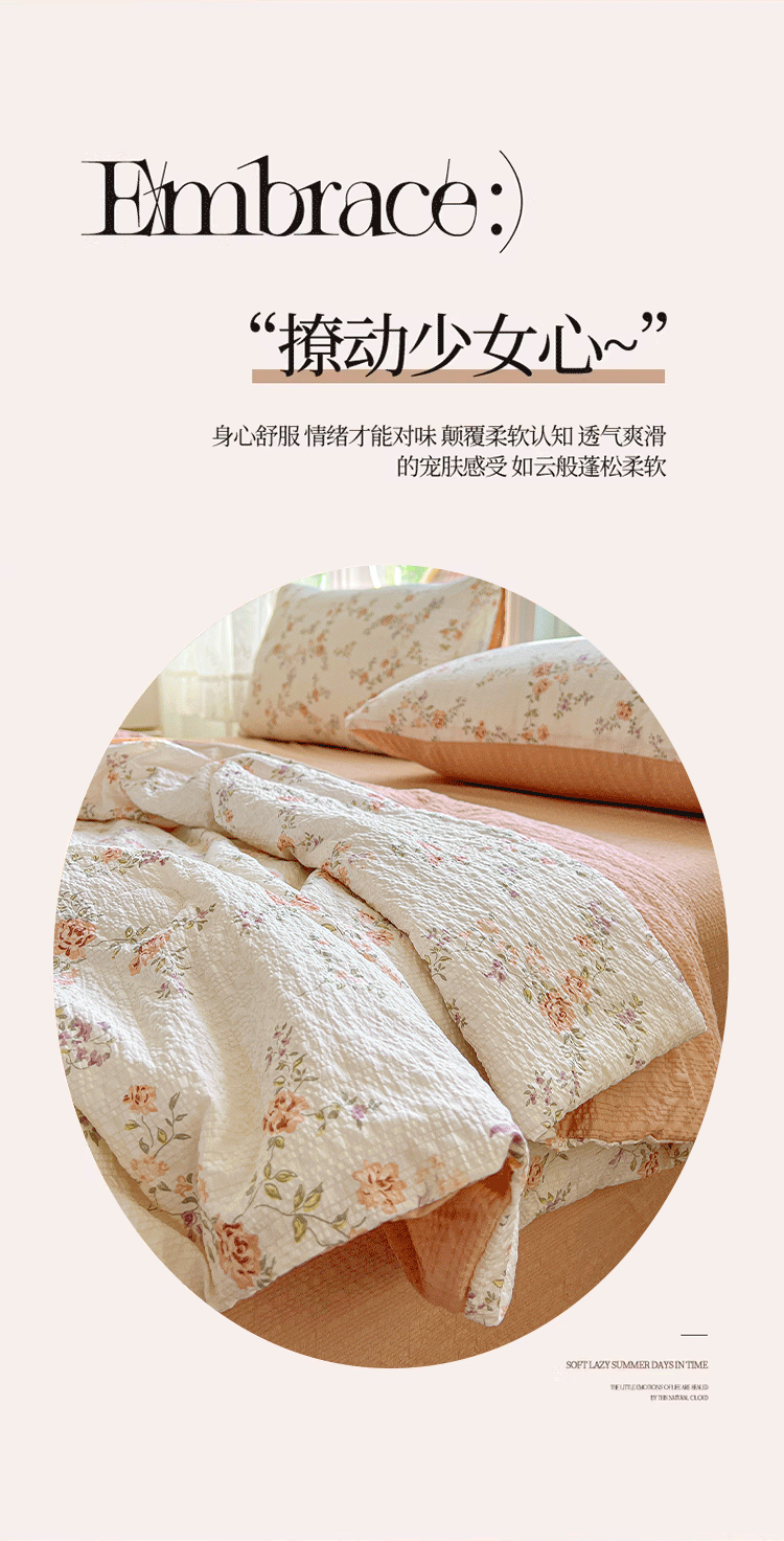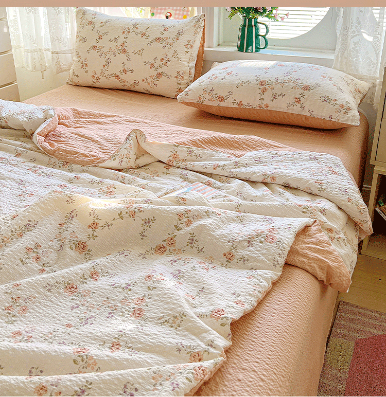 商品名称:小桃姐家纺 2026新款泡芙棉双层纱夏被空调被四件套小清新泡泡纱夏被卡通夏凉被空调被 初晴