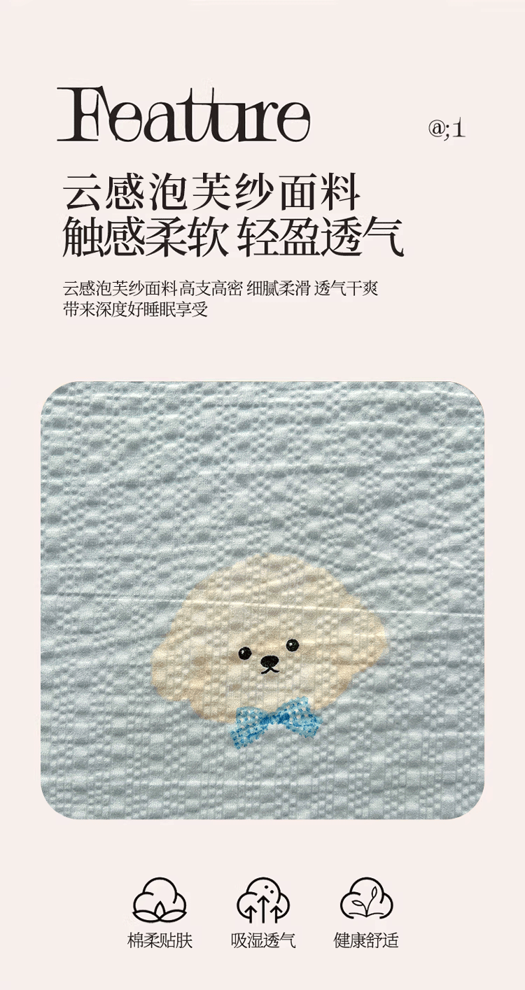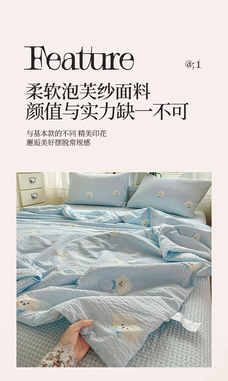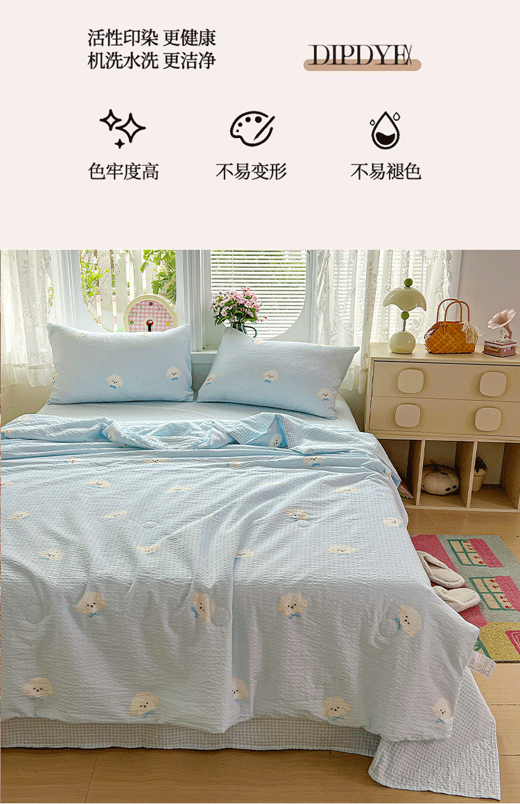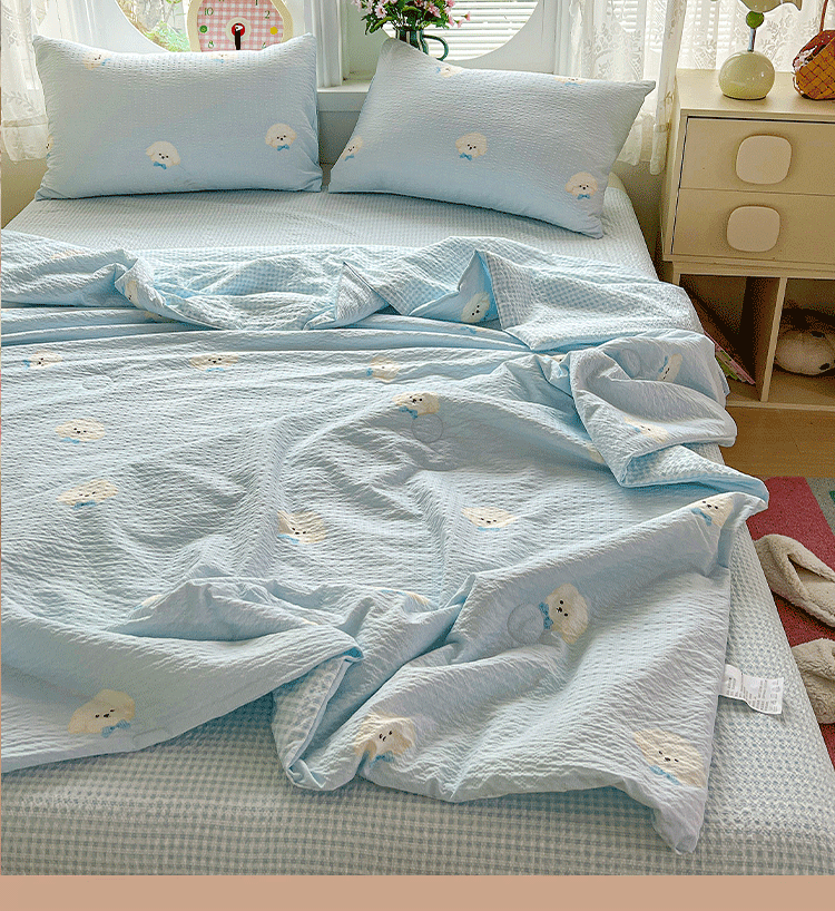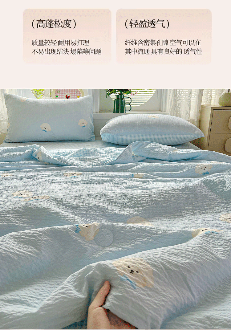 商品名称:小桃姐家纺 2026新款泡芙棉双层纱夏被空调被四件套小清新泡泡纱夏被卡通夏凉被空调被 软萌小狗