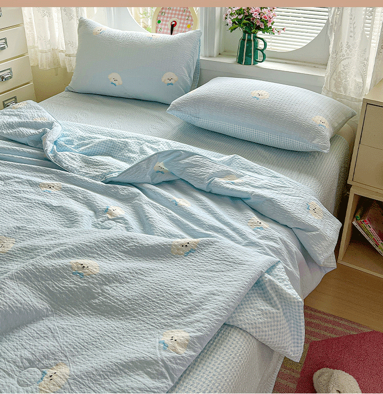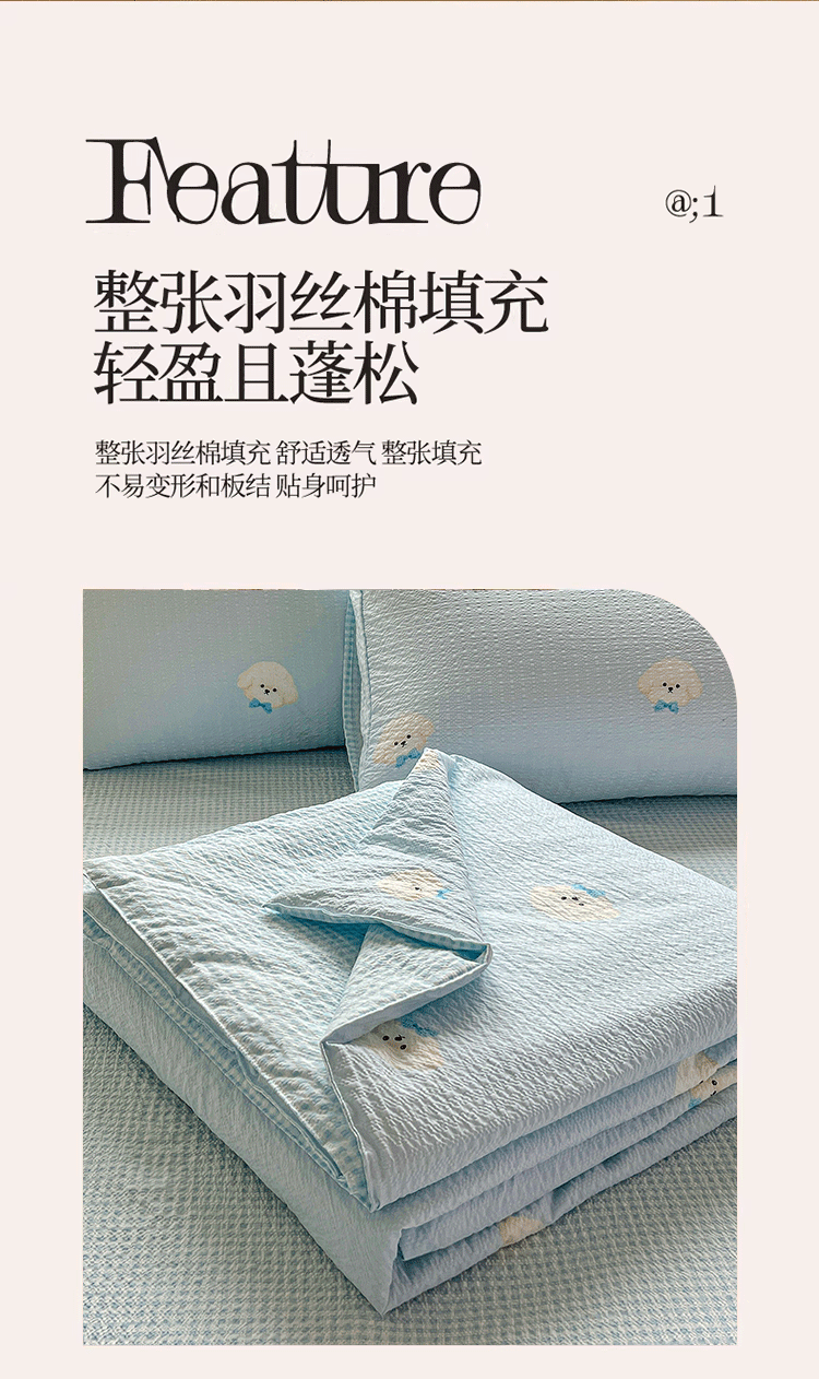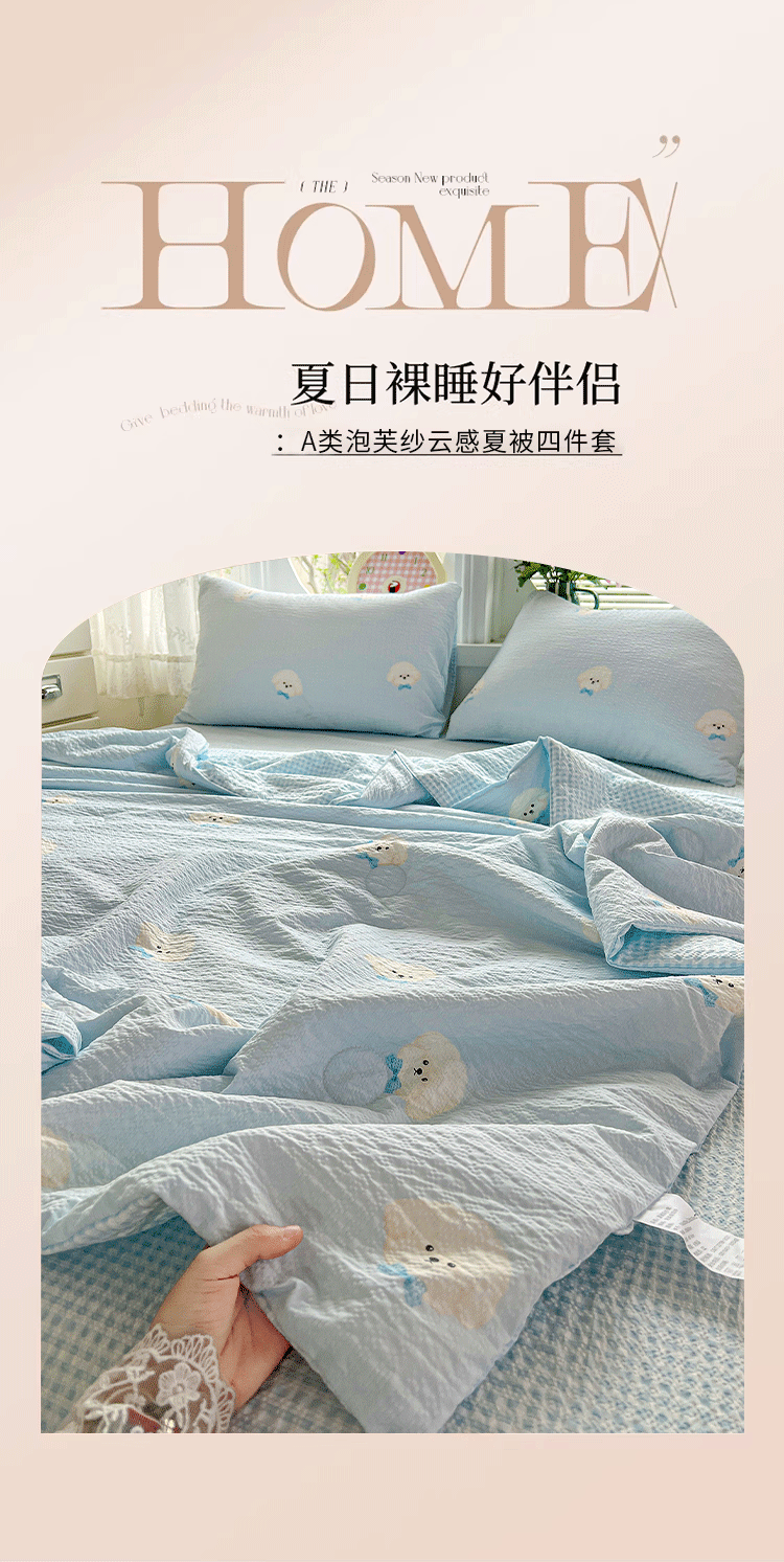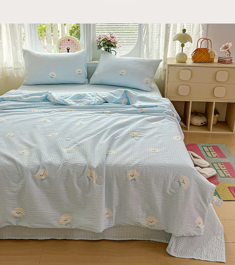 商品名称:小桃姐家纺 2026新款泡芙棉双层纱夏被空调被四件套小清新泡泡纱夏被卡通夏凉被空调被 软萌小狗